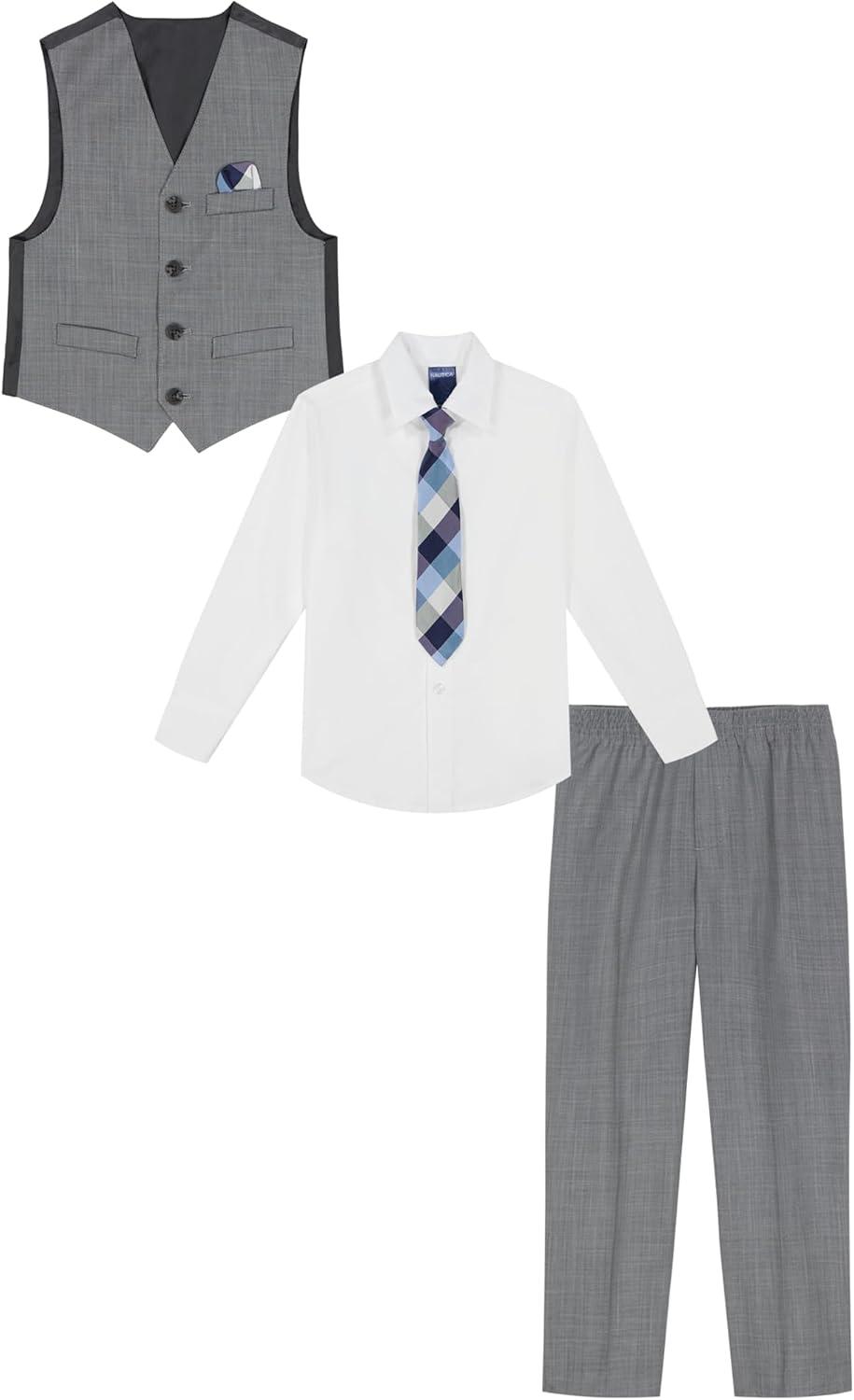 Nautica Boys’ 4-Piece Formal Suit Set with Vest, Pants, Collared Dress Shirt, and Tie(Light Grey Deco Sharkskin)