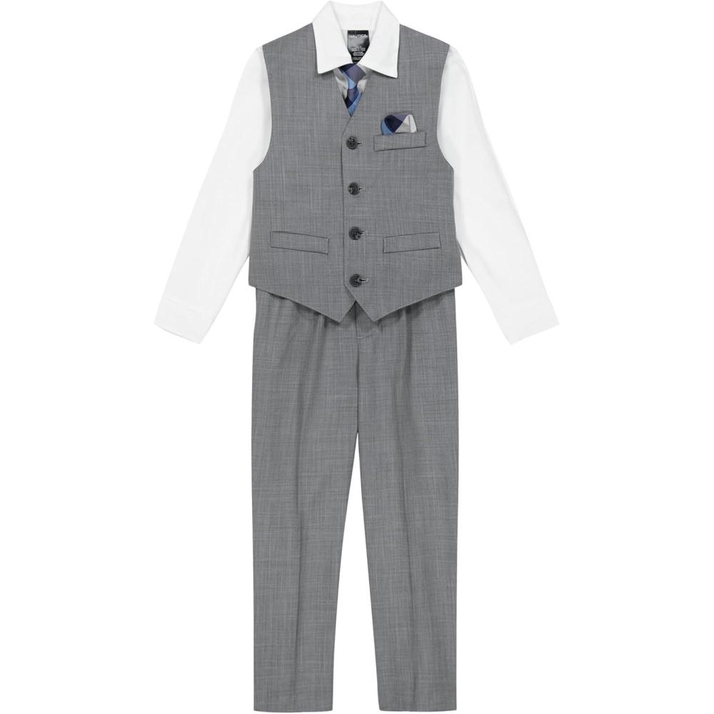 imageNautica Boys 4Piece Formal Suit Set with Vest Pants Collared Dress Shirt and TieLight Grey Deco Sharkskin