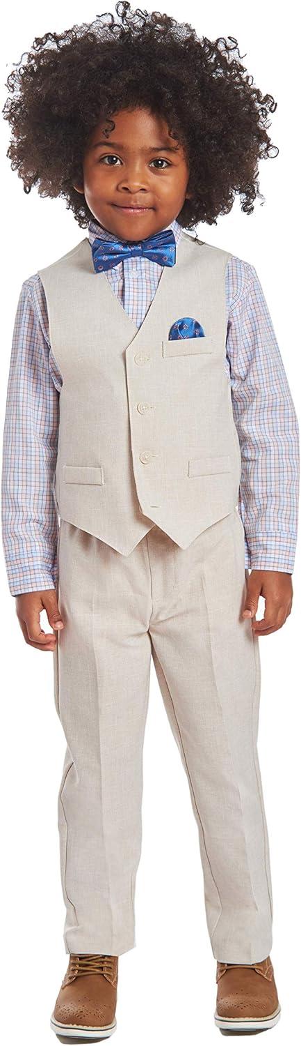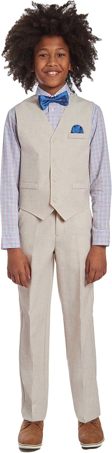 Nautica Boys’ 4-Piece Formal Suit Set with Vest, Pants, Collared Dress Shirt, and Tie(Silver Birch)