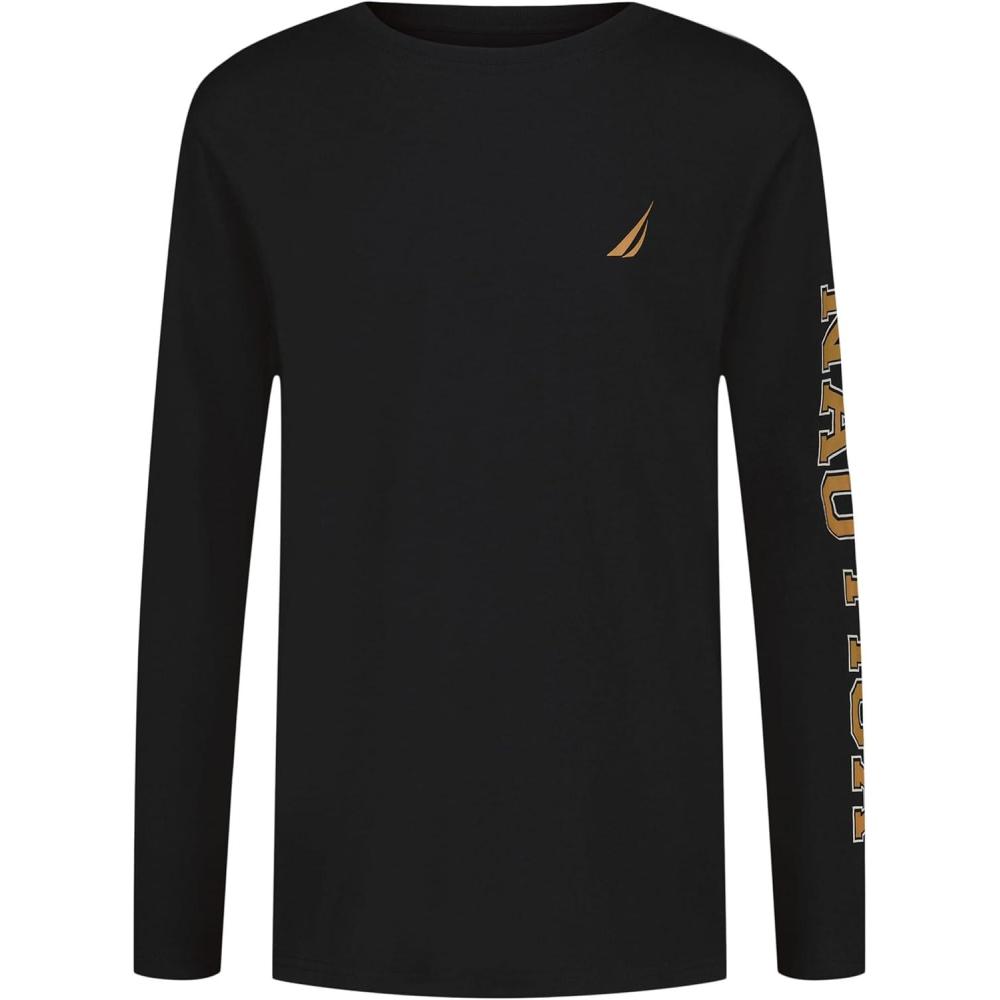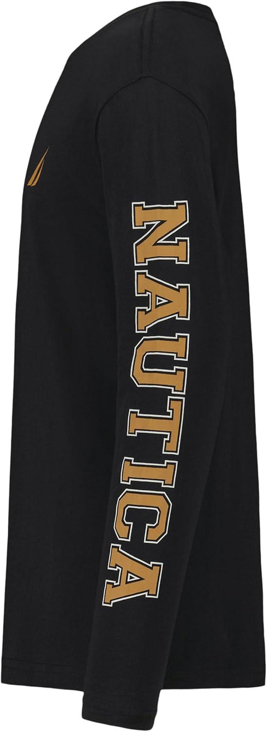 Nautica Boys’ Long Sleeve Screen Print Graphic T-Shirt(Bold True Black)