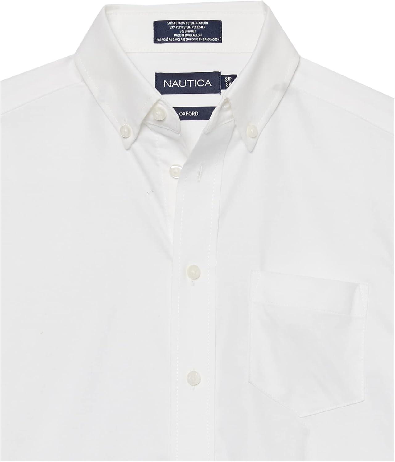 Nautica Boys School Uniform Short Sleeve Button-Down Oxford Shirt, Chest Pocket, Breathable Fabric(White)