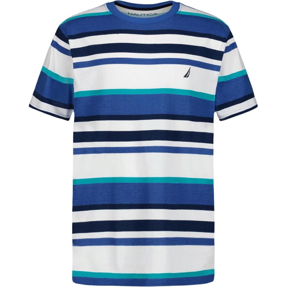 imageNautica Boys Short Sleeve Fashion Crew Neck TShirt Soft Comfortable Relaxed FitPreppy Stripe Delft
