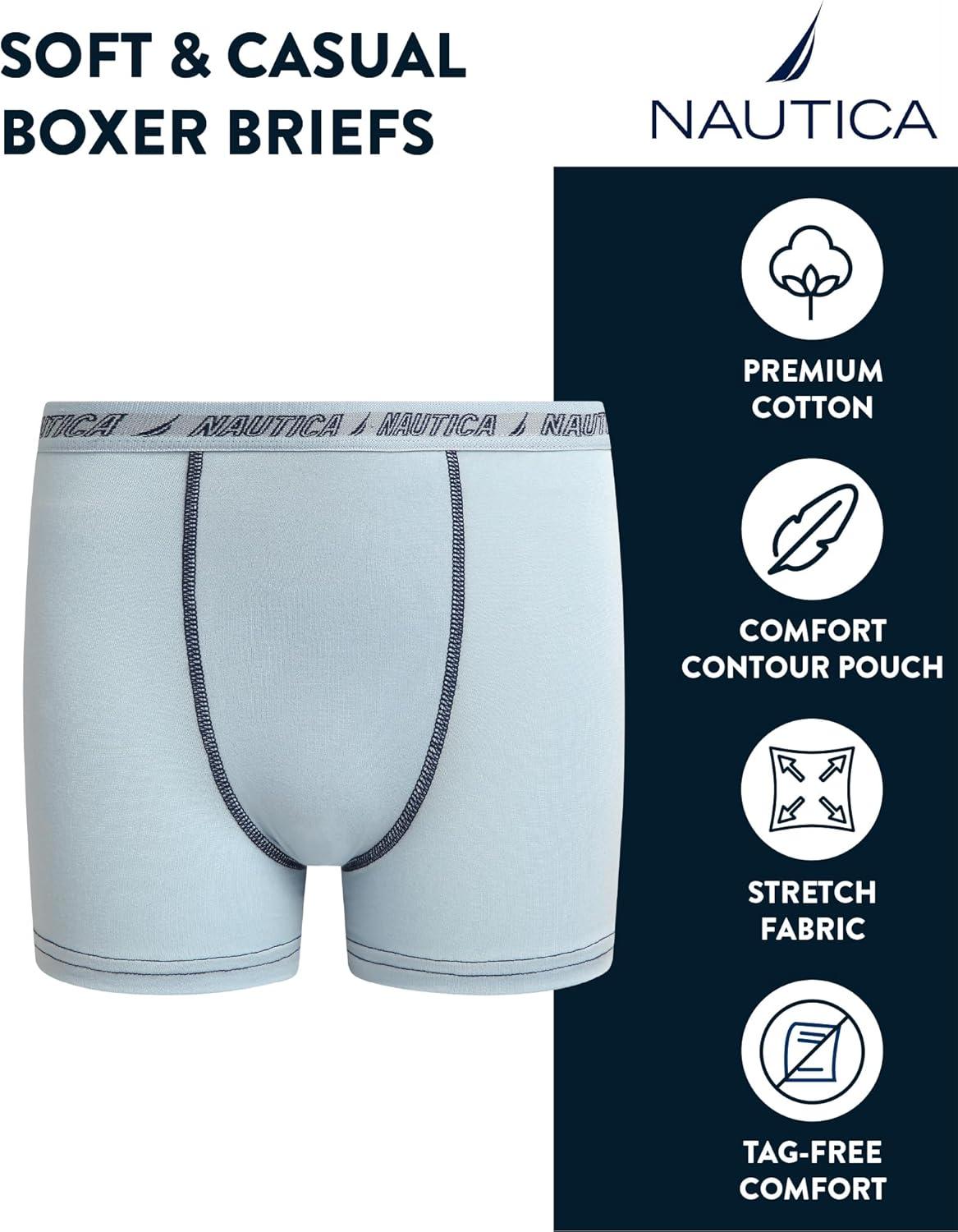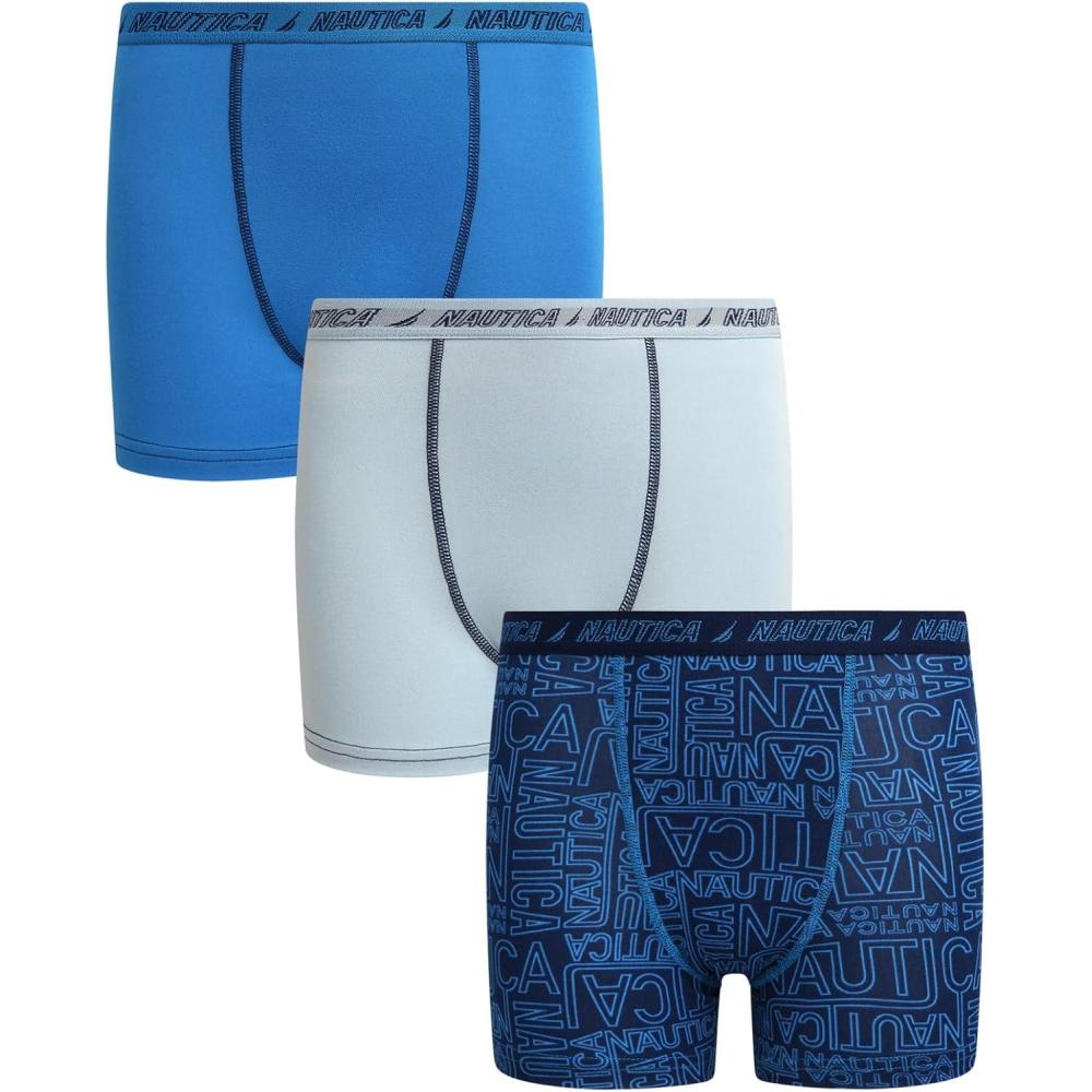Nautica Boys Stretch Performance Boxer Briefs, 3/6 Pack - Breathable Underwear for Boys (6-18)(Blue/Light Blue/Royal Blue-3pk)