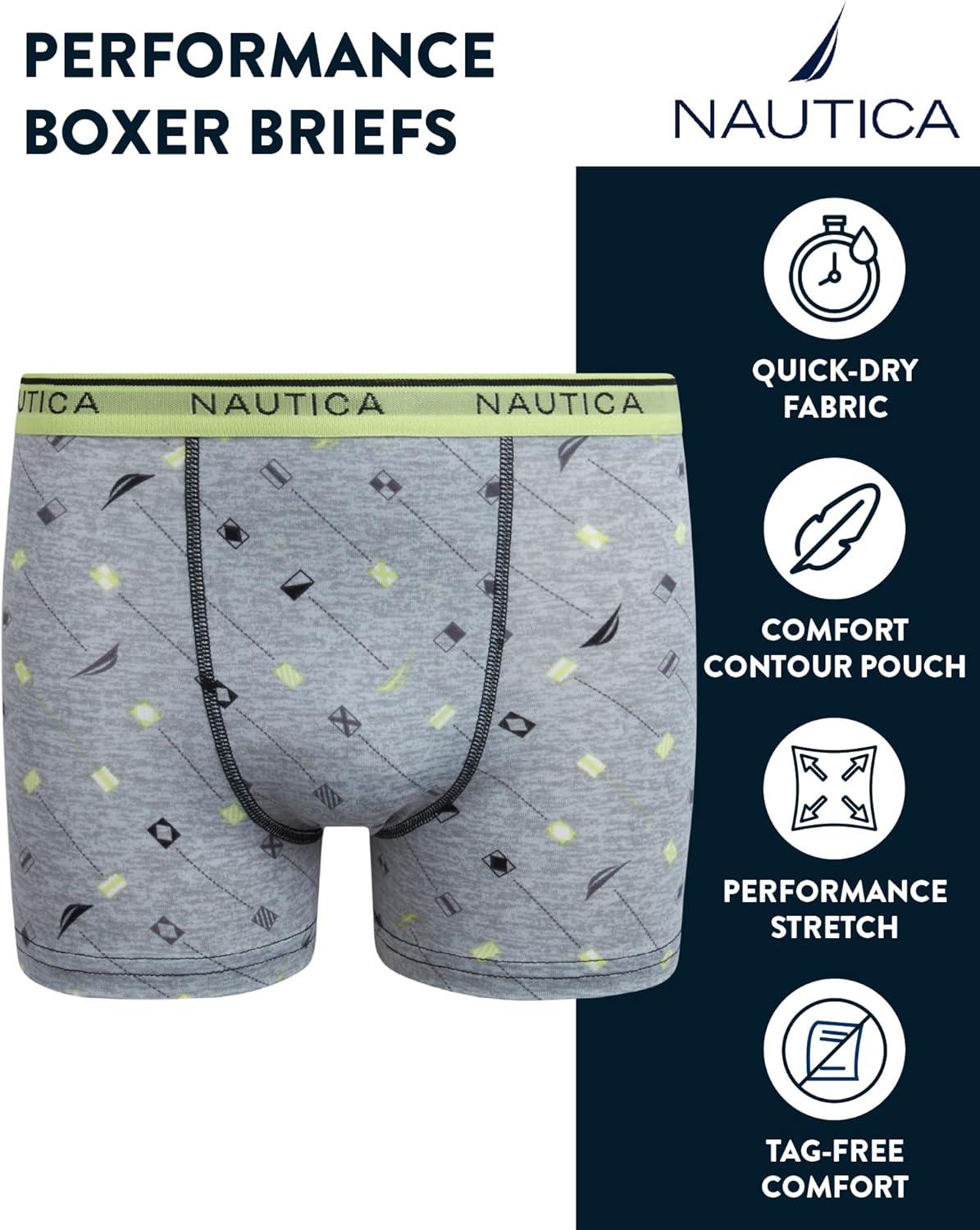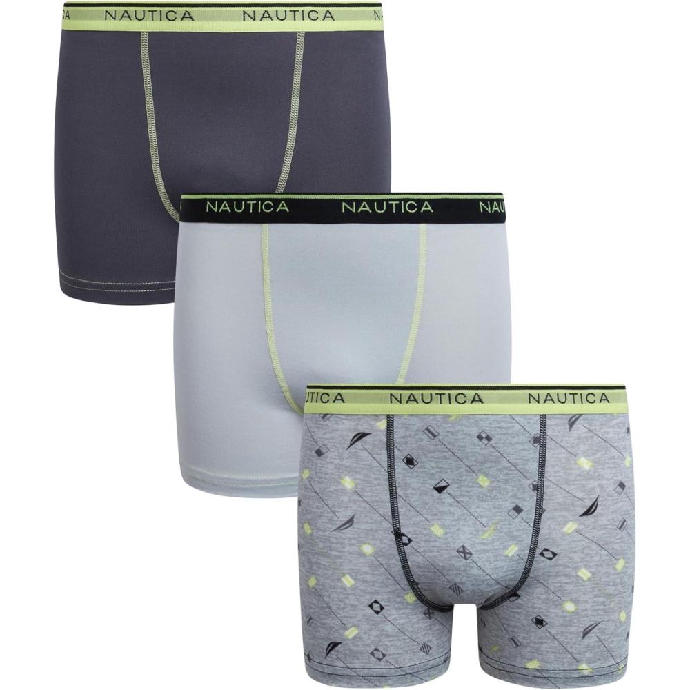 Nautica Boys Stretch Performance Boxer Briefs, 3/6 Pack – Breathable Underwear for Boys (6-18)(Grey Heather Print/Quiet Grey/Charcoal- 3pk)