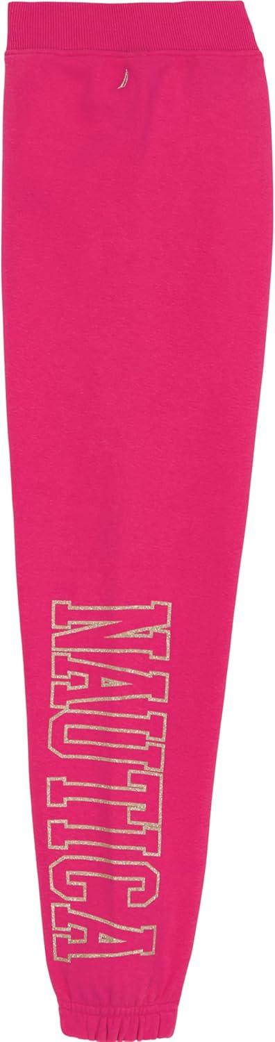Nautica Girls' Fleece Pull-on Jogger Sweatpants, Functional Side Pockets(Fuchsia Glitter Art)