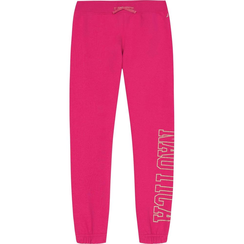 Nautica Girls’ Fleece Pull-on Jogger Sweatpants, Functional Side Pockets(Fuchsia Glitter Art)