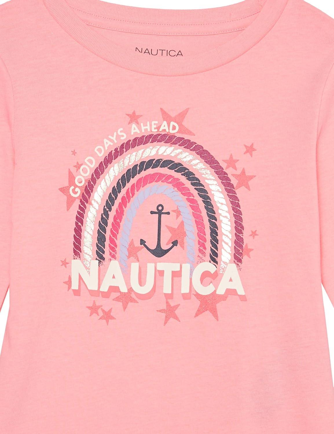Nautica Girls Long Sleeve Graphic T-Shirt(Coral Blush Shine)