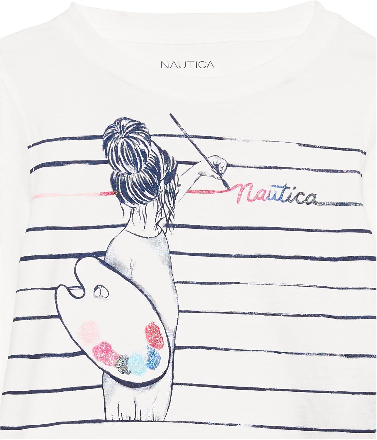 Nautica Girls Long Sleeve Graphic T-Shirt(White Paint)
