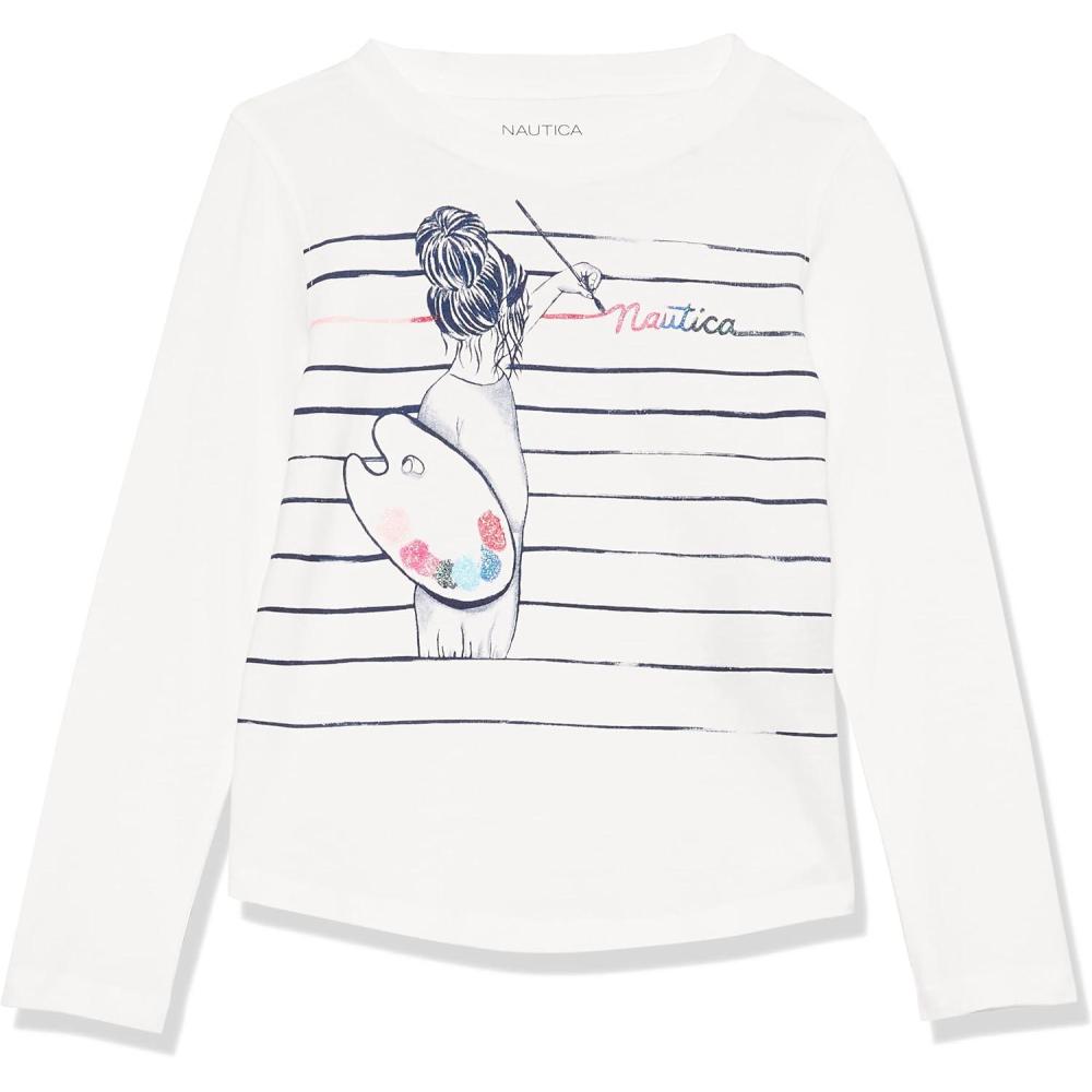 imageNautica Girls Long Sleeve Graphic TShirtWhite Paint
