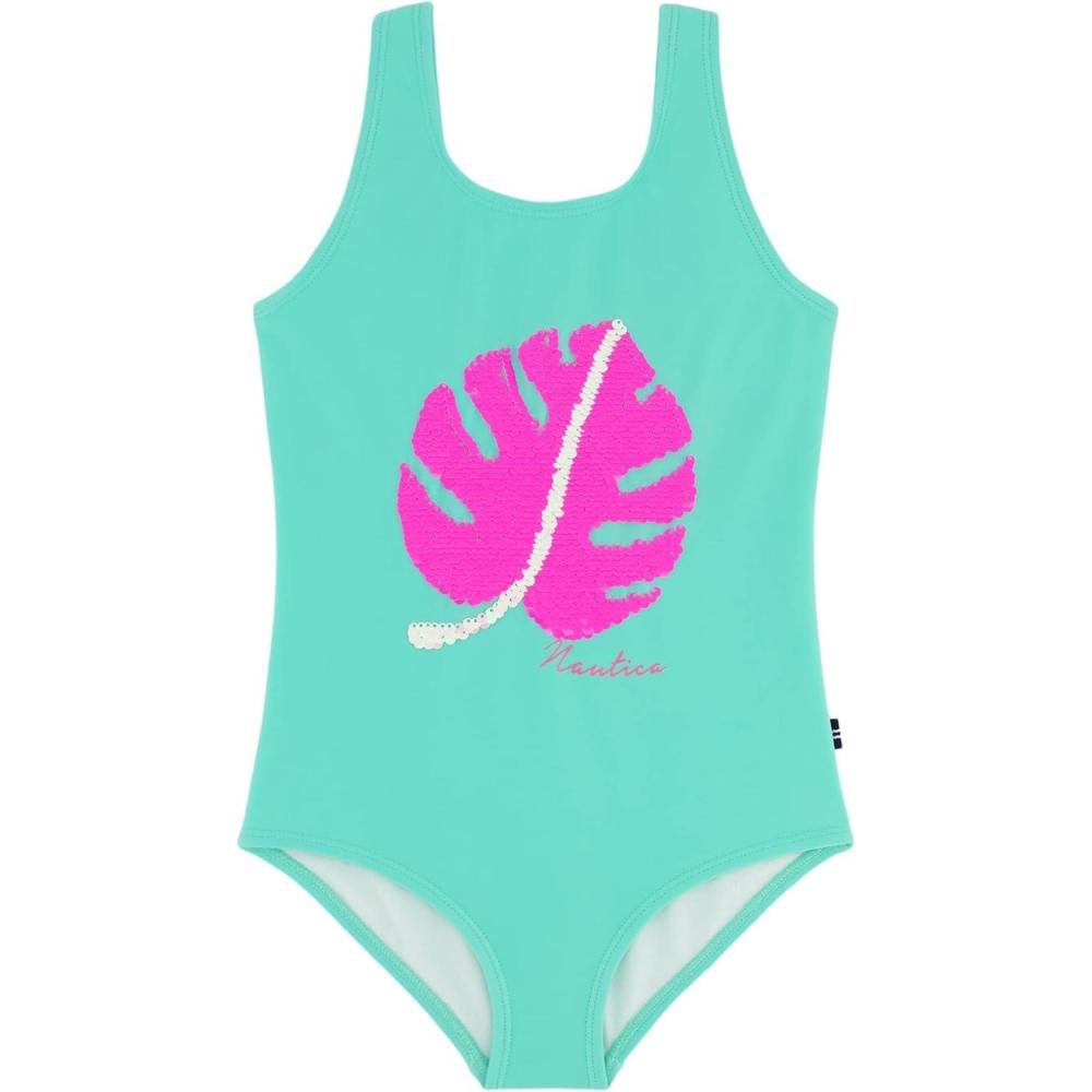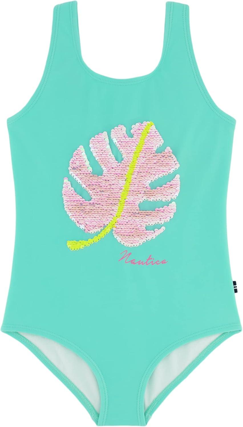 Nautica Girls One-Piece Swimsuit with UPF 50+ Sun Protection, Quick Drying Bathing Suit(Cockatoo Palm)