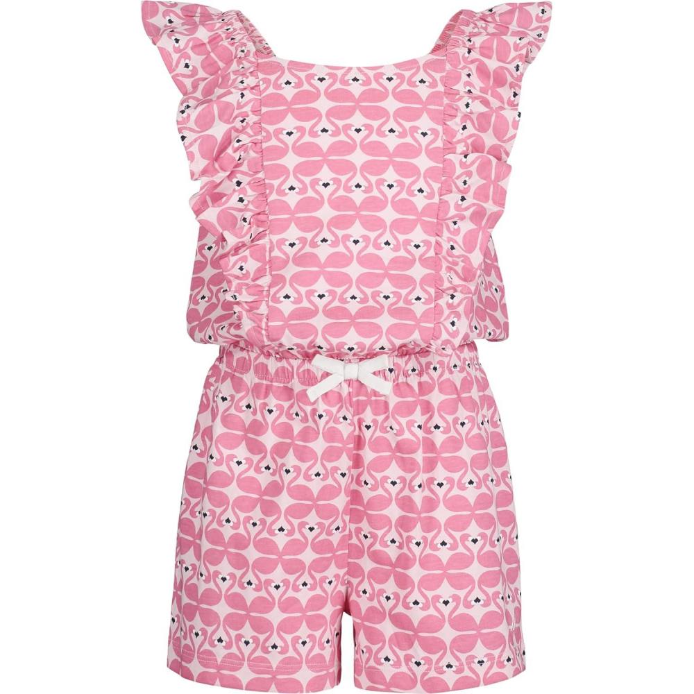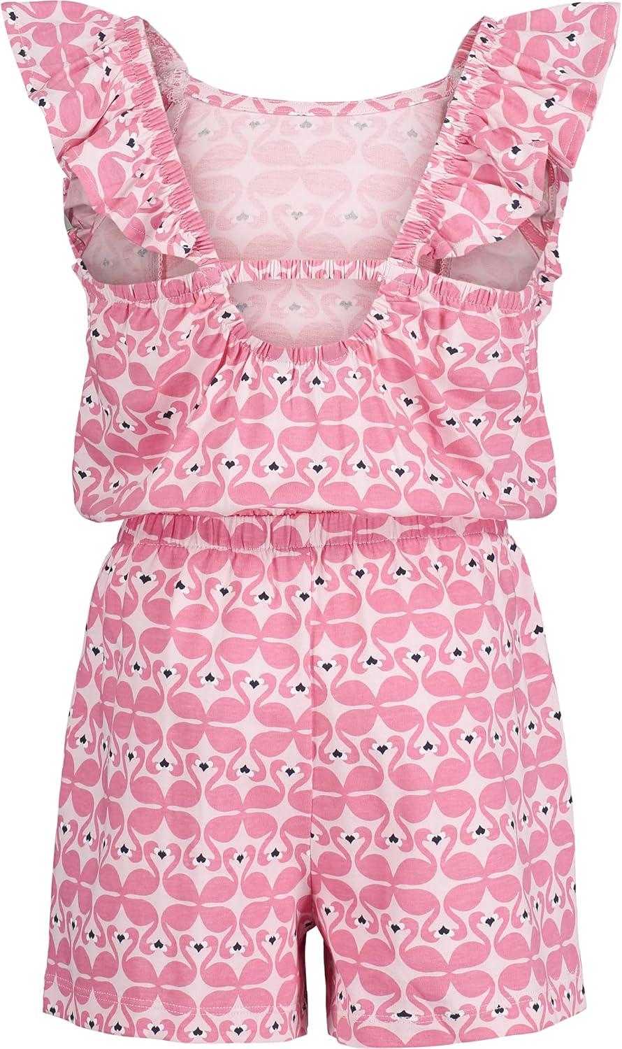 Nautica girls Patterned Knit Jersey Romper, Sleeveless Relaxed Fit & Cinched Waist(Hot Pink Flamingo)