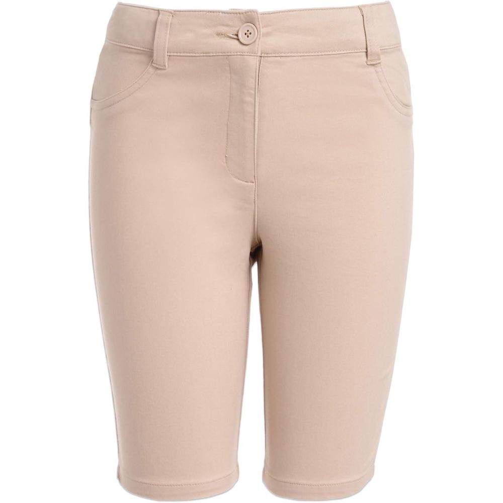 Nautica Girls School Uniform Bermuda Shorts, Pull-on Fit, Stretchy Material, Functional Pockets(Khaki)