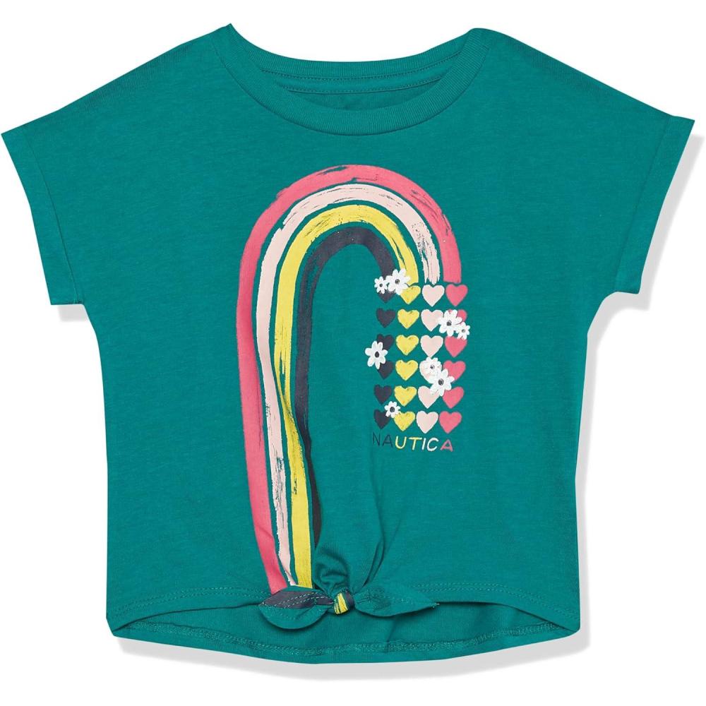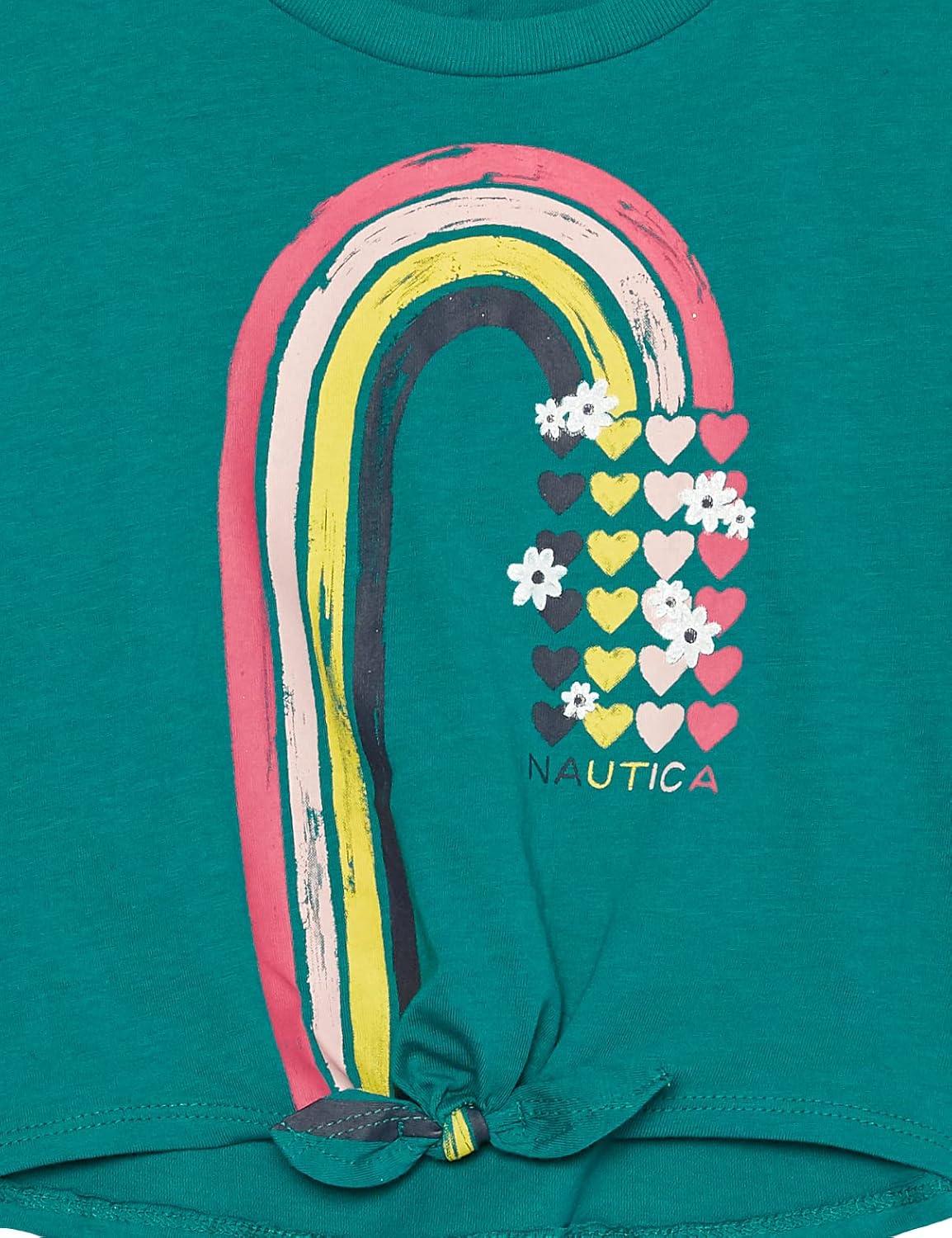 Nautica Girls’ Short Sleeve Graphic Logo T-Shirt, Everyday Casual Wear, Soft & Comfortable Fit(Quetzal Green Rainbow)