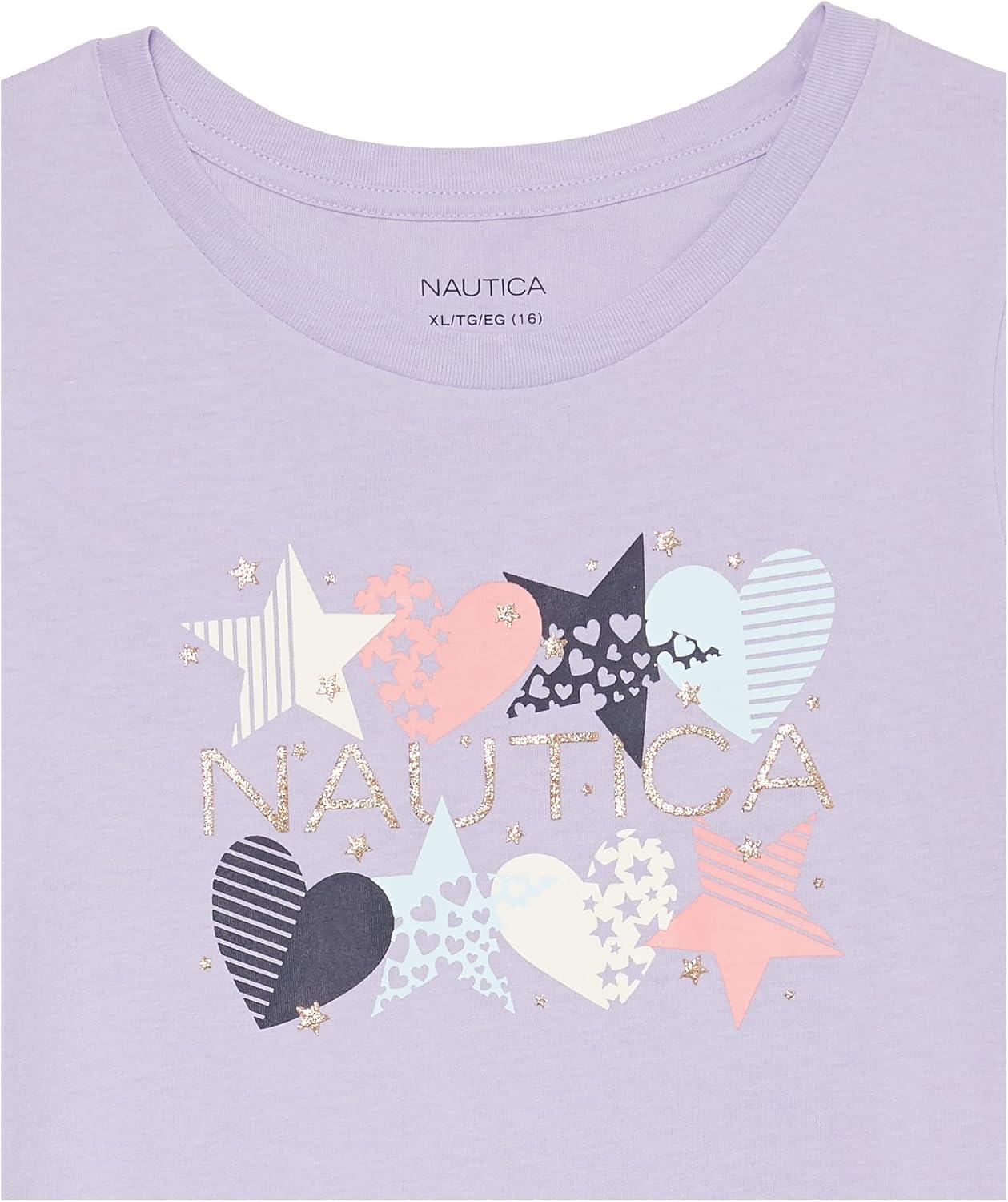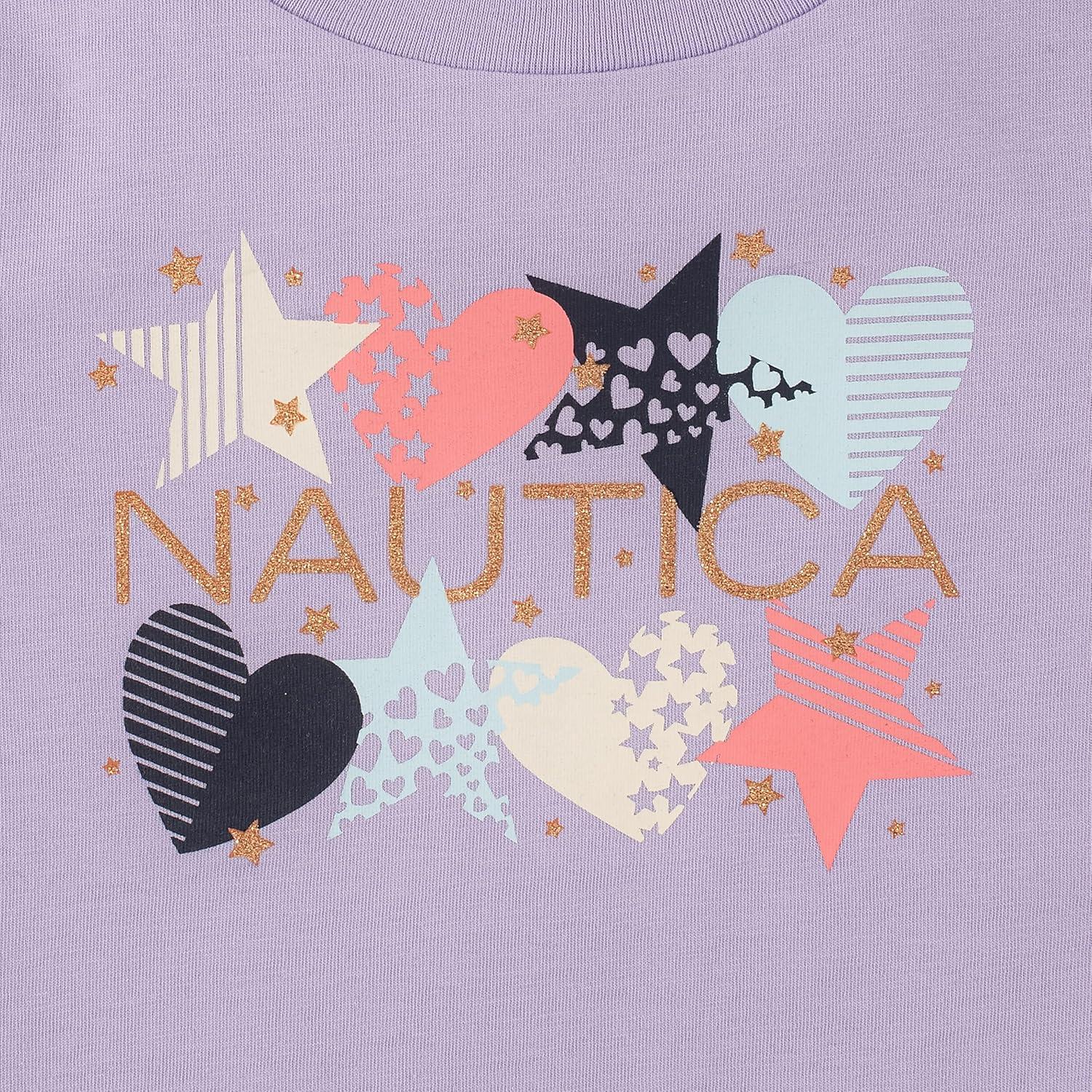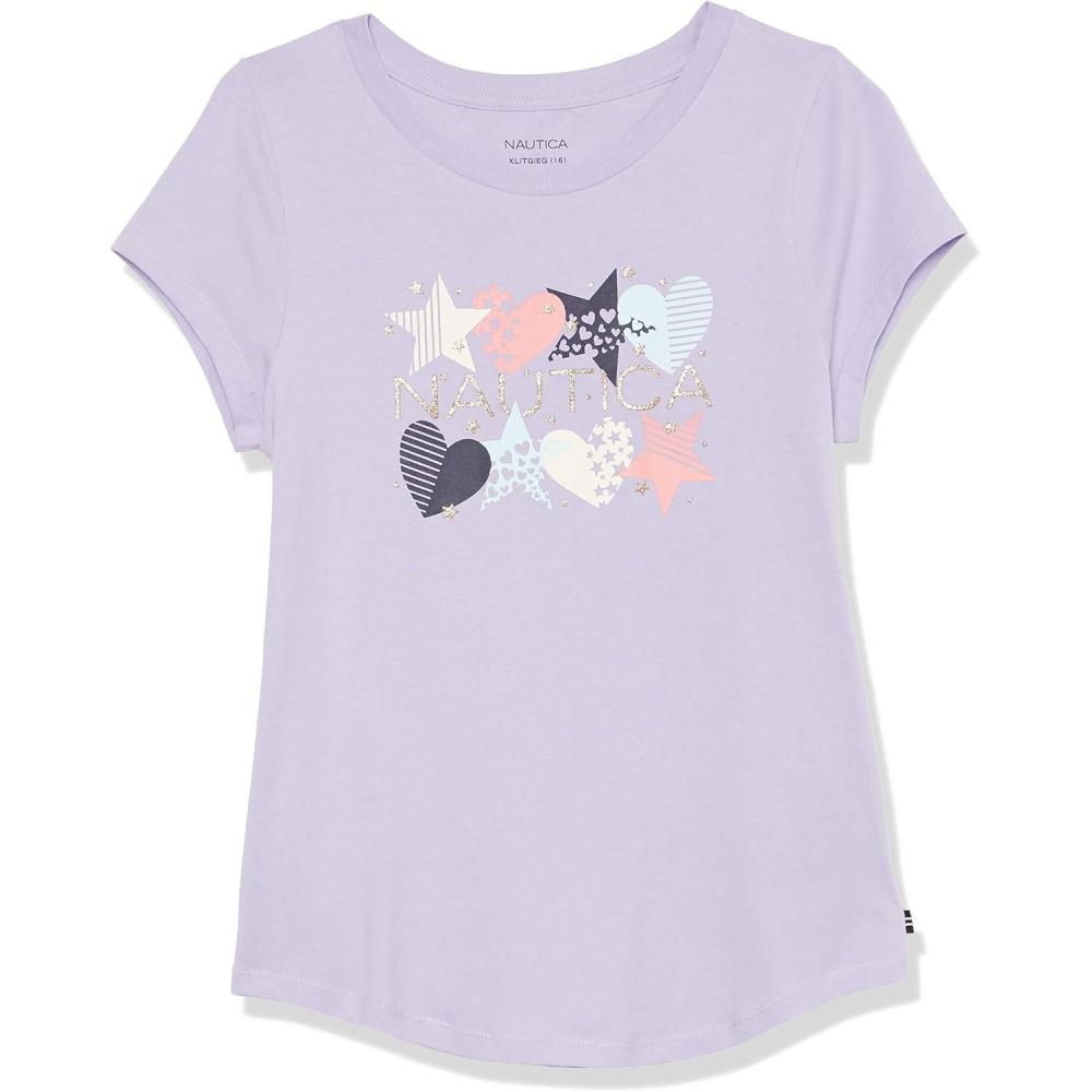 Nautica Girls Short Sleeve T-Shirt with Fun Graphic Design, Cotton Tee with Tagless Interior(Purple Heart Star)