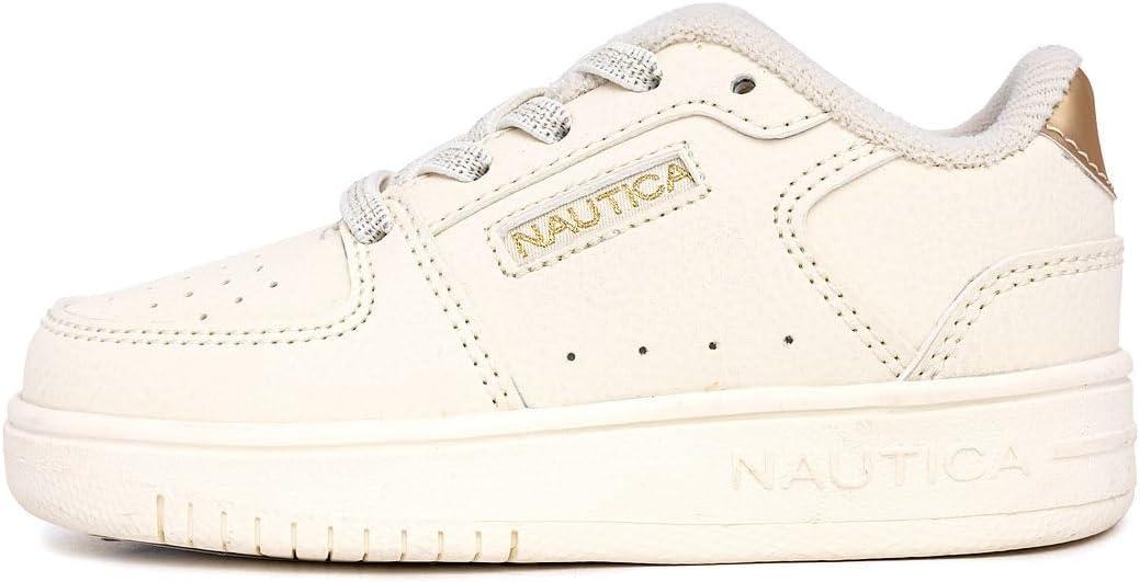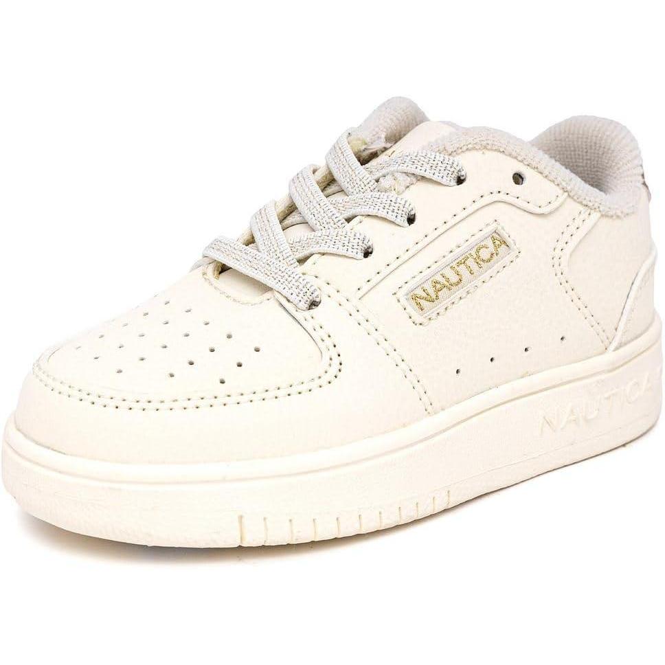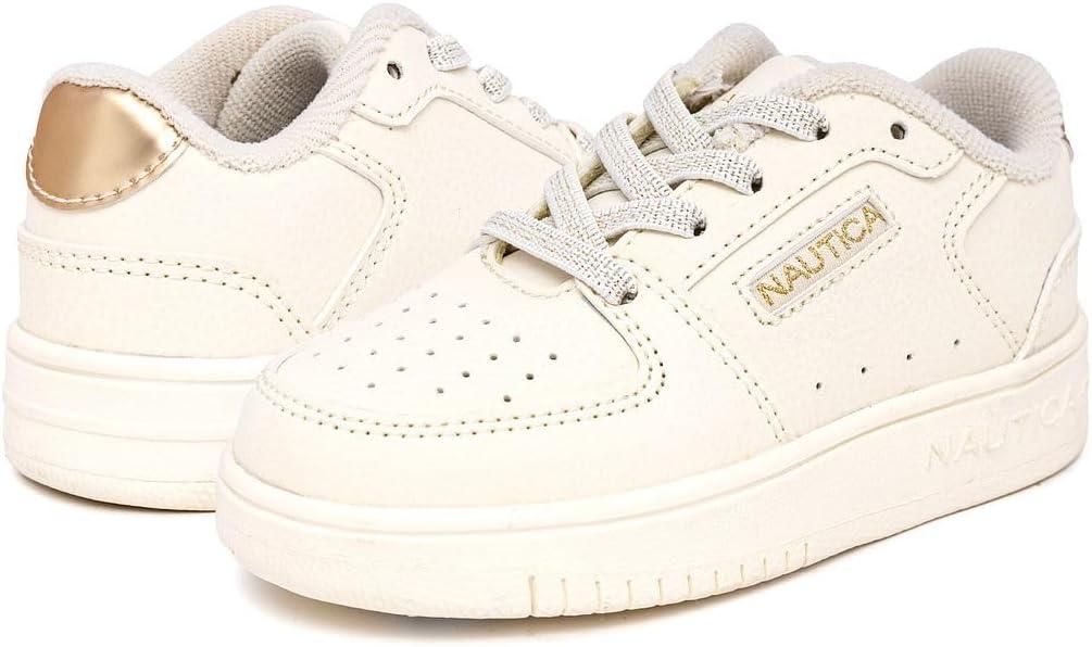 Nautica Girls' Sneakers - Lace-Up Tennis Shoes, Casual & Comfortable for Toddlers,Toddler, Little Kids & Big Kids (Platform/Regular)(Bone Pale Gold)