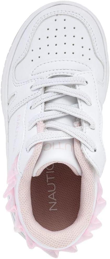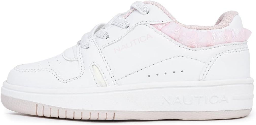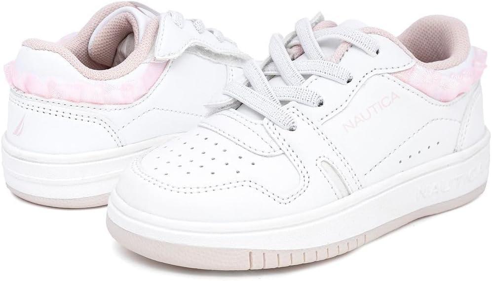 Nautica Girls' Sneakers - Lace-Up Tennis Shoes, Casual & Comfortable for Toddlers,Toddler, Little Kids & Big Kids (Platform/Regular)(White Pink-milra)
