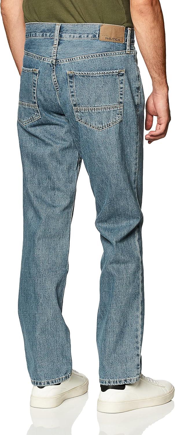 Nautica Jeans Men’s Straight Light Cross Hatch Jean(Medium Sky Wash)