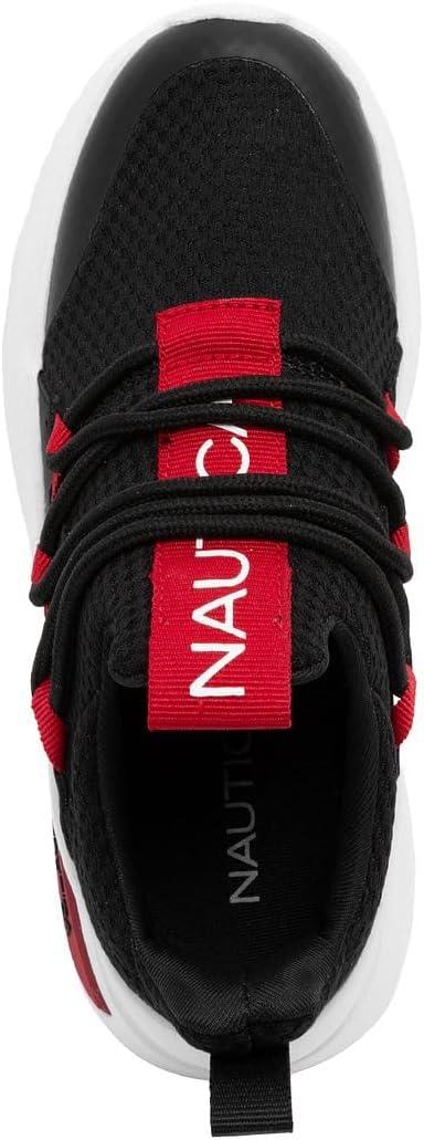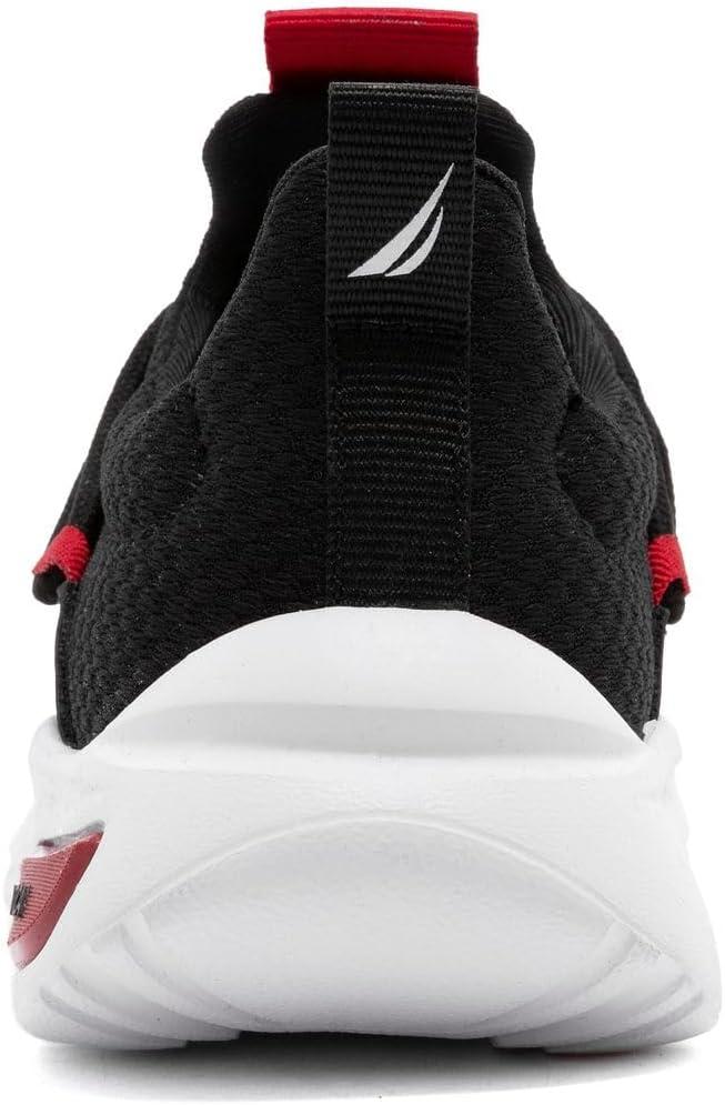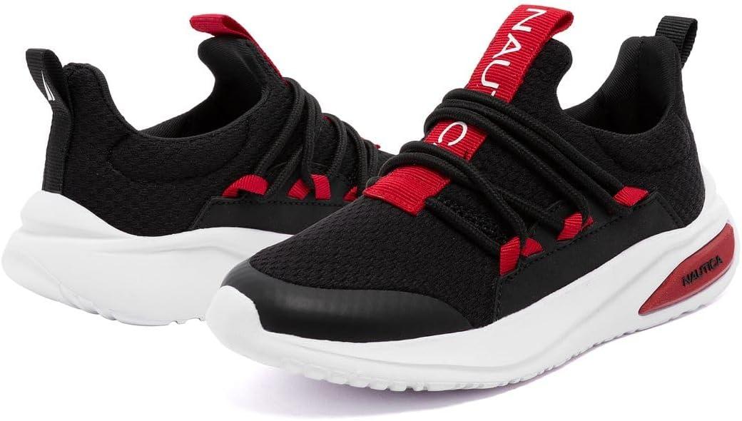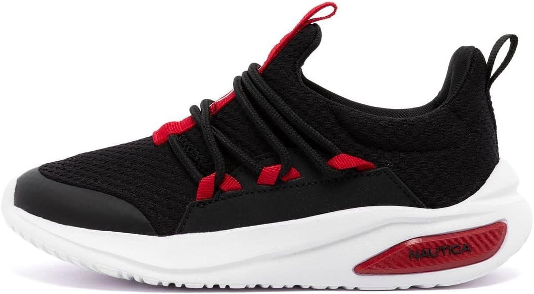 Nautica Kids Athletic Slip-On Sneakers - Comfortable Bungee Running Shoes for Boys and Girls - Stylish and Supportive Footwear for Active Kids (Big Kid/Little Kid/Toddler)(Black Black Red)
