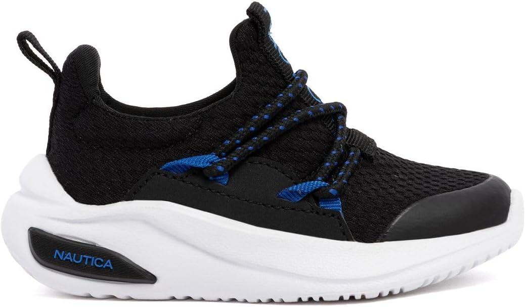 Nautica Kids Athletic Slip-On Sneakers – Comfortable Bungee Running Shoes for Boys and Girls – Stylish and Supportive Footwear for Active Kids (Big Kid/Little Kid/Toddler)(Black Cobalt)