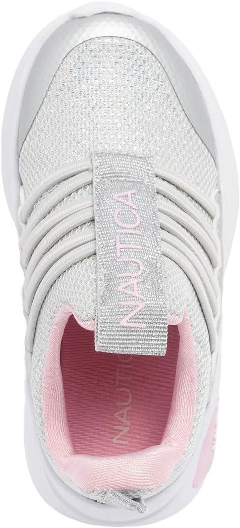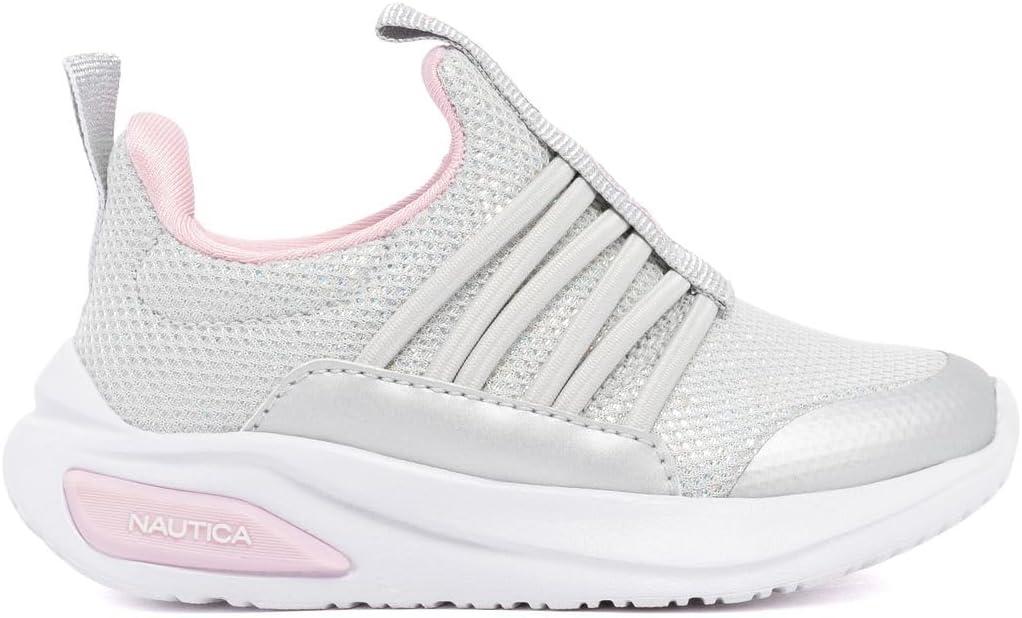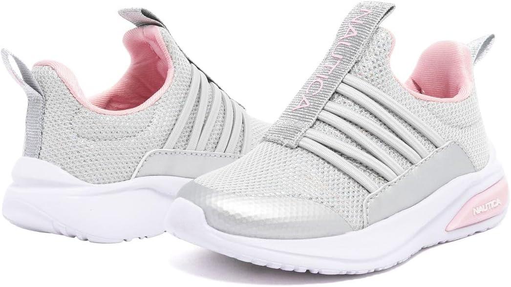 Nautica Kids Athletic Slip-On Sneakers – Comfortable Bungee Running Shoes for Boys and Girls – Stylish and Supportive Footwear for Active Kids (Big Kid/Little Kid/Toddler)(Grey Silver Pink)