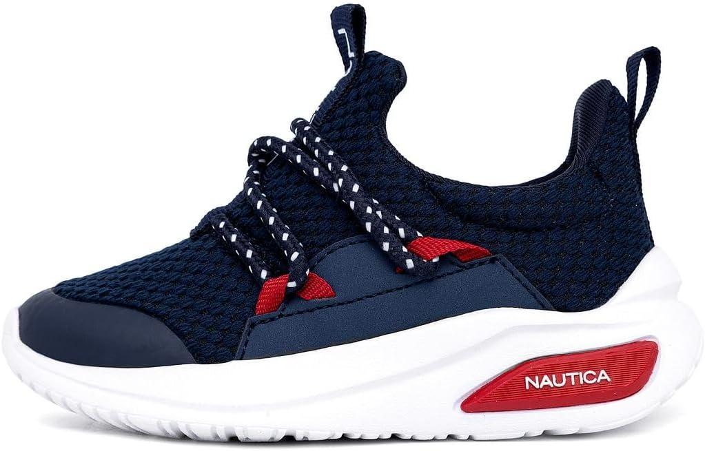 Nautica Kids Athletic Slip-On Sneakers – Comfortable Bungee Running Shoes for Boys and Girls – Stylish and Supportive Footwear for Active Kids (Big Kid/Little Kid/Toddler)(Navy White Red-swimm)