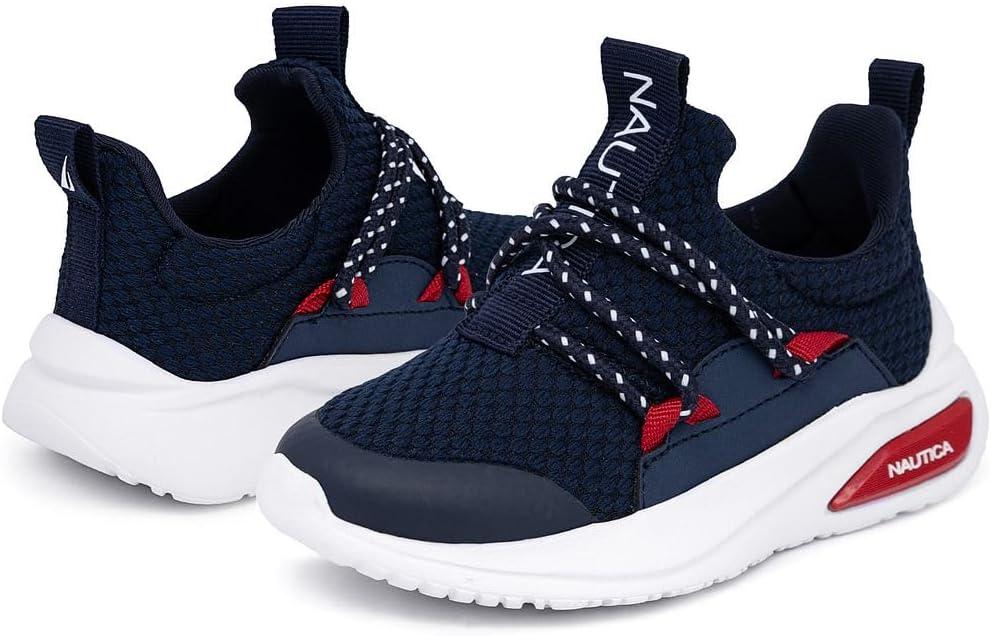 Nautica Kids Athletic Slip-On Sneakers - Comfortable Bungee Running Shoes for Boys and Girls - Stylish and Supportive Footwear for Active Kids (Big Kid/Little Kid/Toddler)(Navy White Red-swimm)