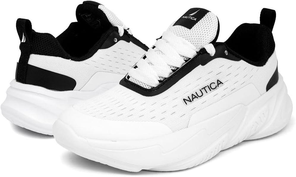 Nautica Kids Lace-Up Sneakers | Comfortable Running Shoes for Boys and Girls | Little Kid/Big Kid(Black White-nigel)