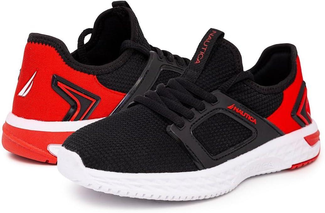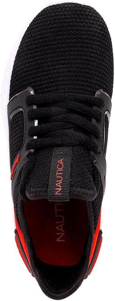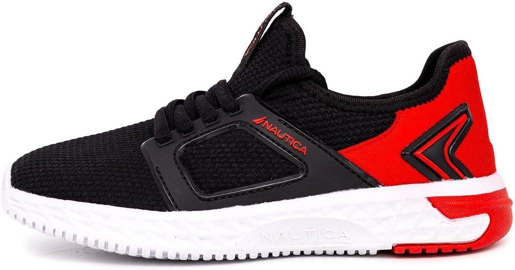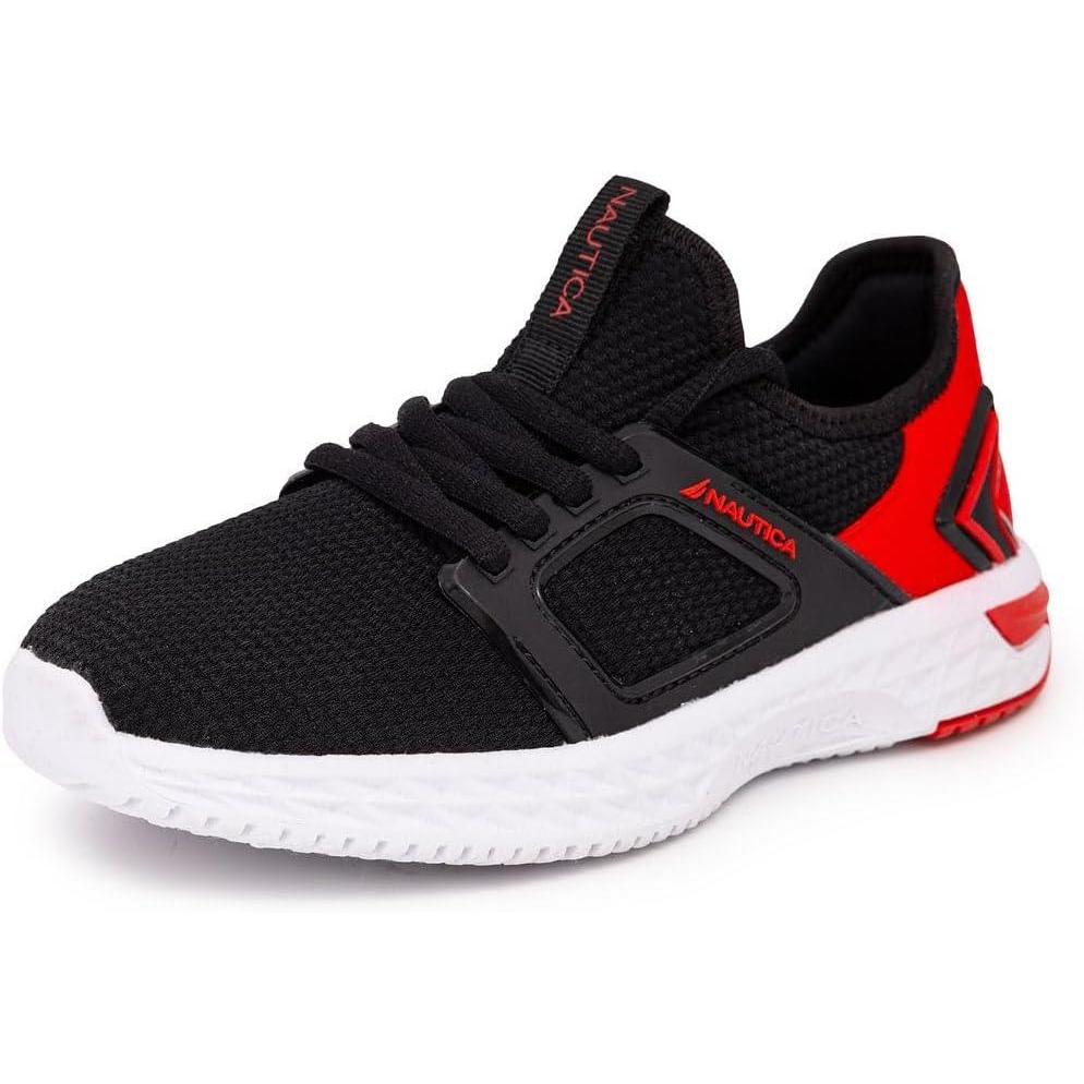 Nautica Kids Lace-Up Sneakers | Comfortable Running Shoes for Boys and Girls | Little Kid/Big Kid(Black White Red-arano)