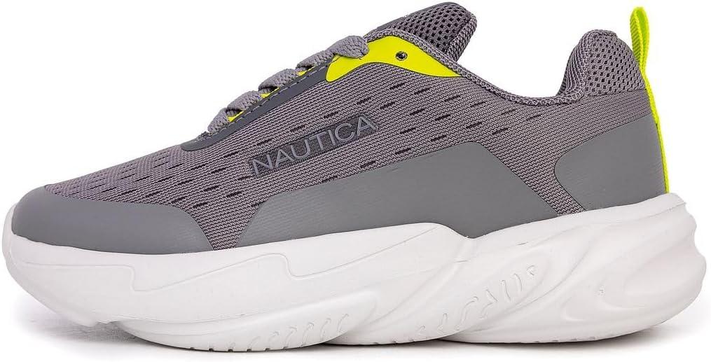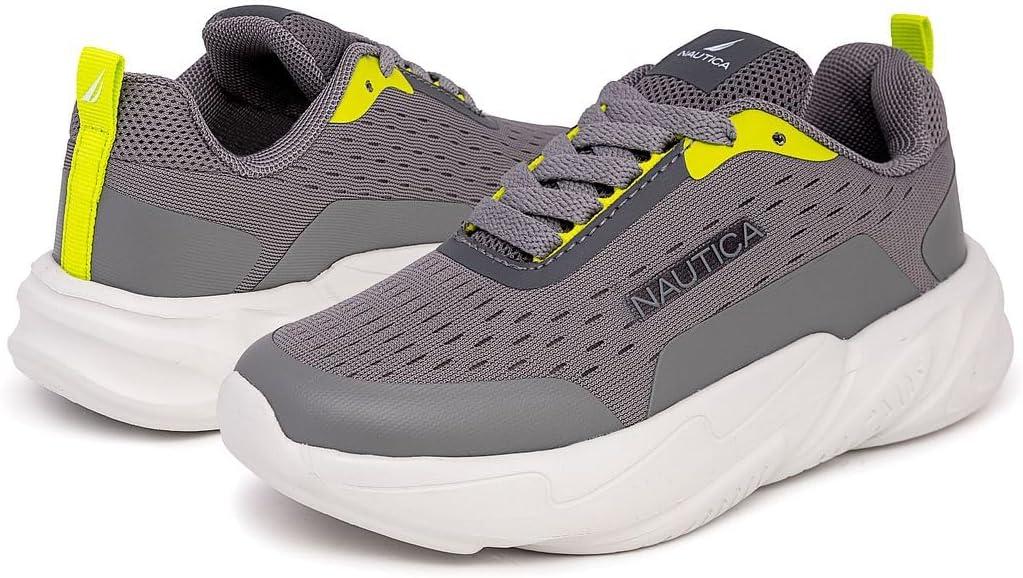 Nautica Kids Lace-Up Sneakers | Comfortable Running Shoes for Boys and Girls | Little Kid/Big Kid(Grey Lime-nigel)