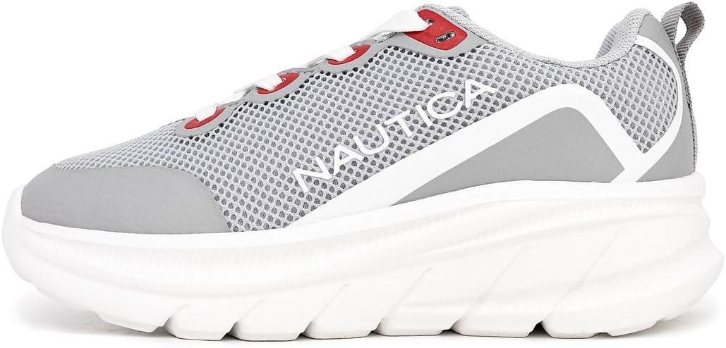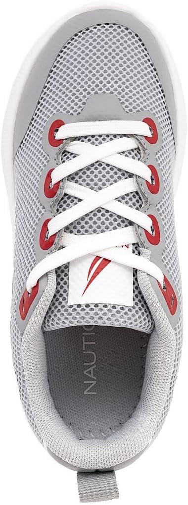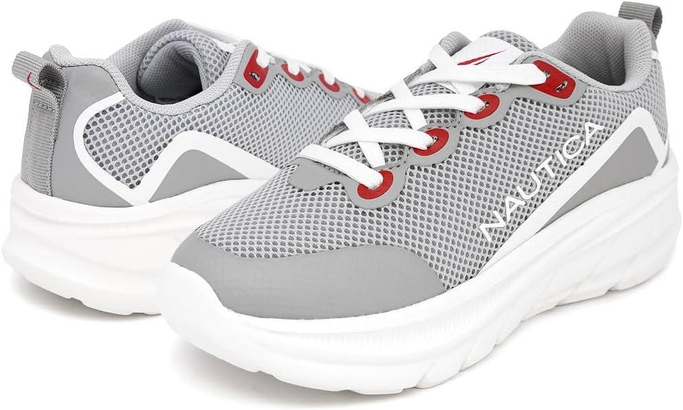 Nautica Kids Lace-Up Sneakers | Comfortable Running Shoes for Boys and Girls | Little Kid/Big Kid(Grey White Red-mariln)