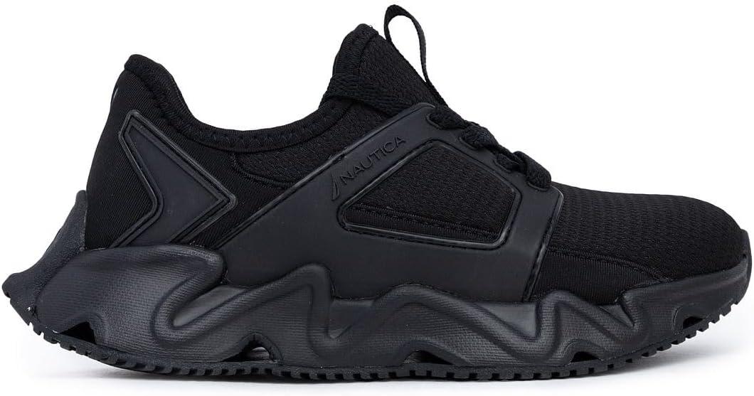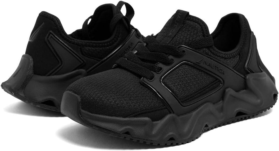 Nautica Kids Running Sneakers | Comfortable Shoes for Boys and Girls | Sizes for Big & Little Kids -(Lace-Up/Bungee) Manalapin(Black Monochrome)