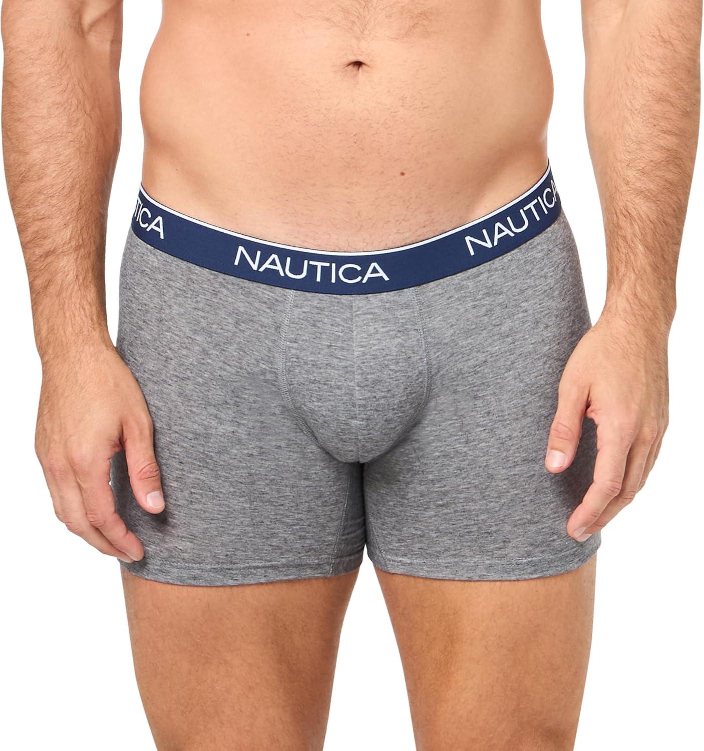 Nautica mens 4 Pack Heather Stretch Boxer Briefs(2 Peacoat Heather/Dutch Heather/Sea Mist Heather)