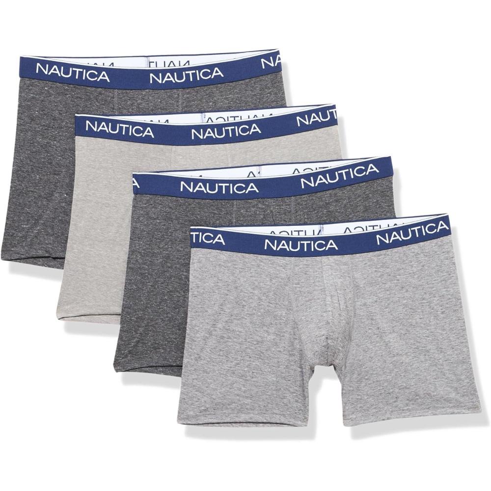 Nautica mens 4 Pack Heather Stretch Boxer Briefs(Black Heather/Charcoal Heather/Light Grey Heather/Cornell Heather)