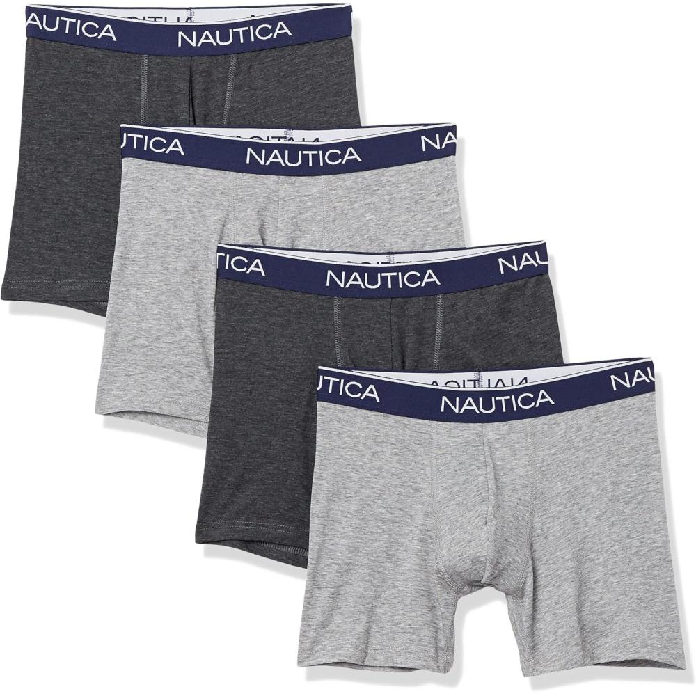 Nautica mens 4 Pack Heather Stretch Boxer Briefs(2 Charcoal Heather/2 Light Grey Heather)