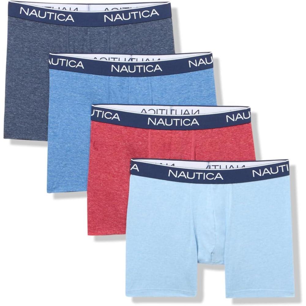 Nautica mens 4 Pack Heather Stretch Boxer Briefs(Peacoat/Dutch/Sea Mist/Nautica Red Heather)