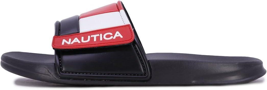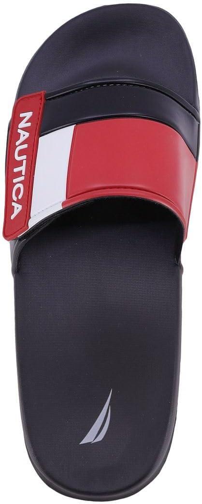 Nautica Men’s Athletic Slide Sandal, Adjustable Straps, Comfort Slip-On (Regular & Wide Widths)(Bower 2-navy/White/Red)