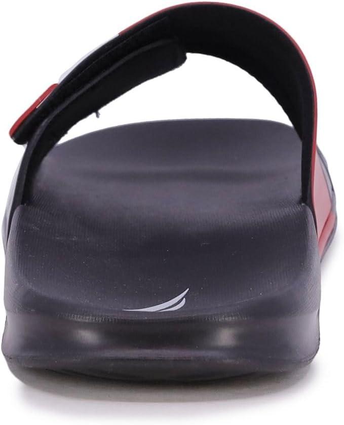 Nautica Men's Athletic Slide Sandal, Adjustable Straps, Comfort Slip-On (Regular & Wide Widths)(Bower 2-black/White/Red)