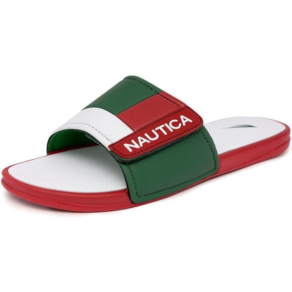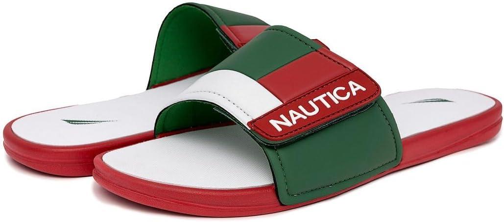 Nautica Men’s Athletic Slide Sandal, Adjustable Straps, Comfort Slip-On (Regular & Wide Widths)(Red)