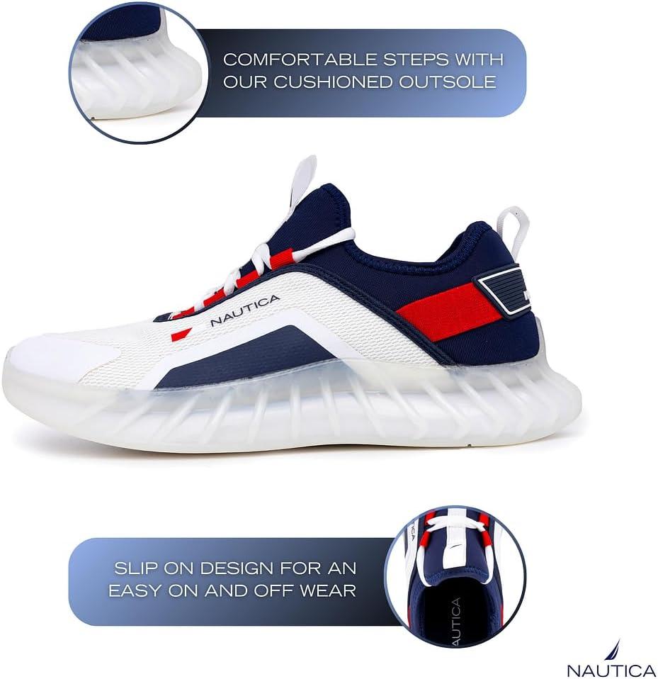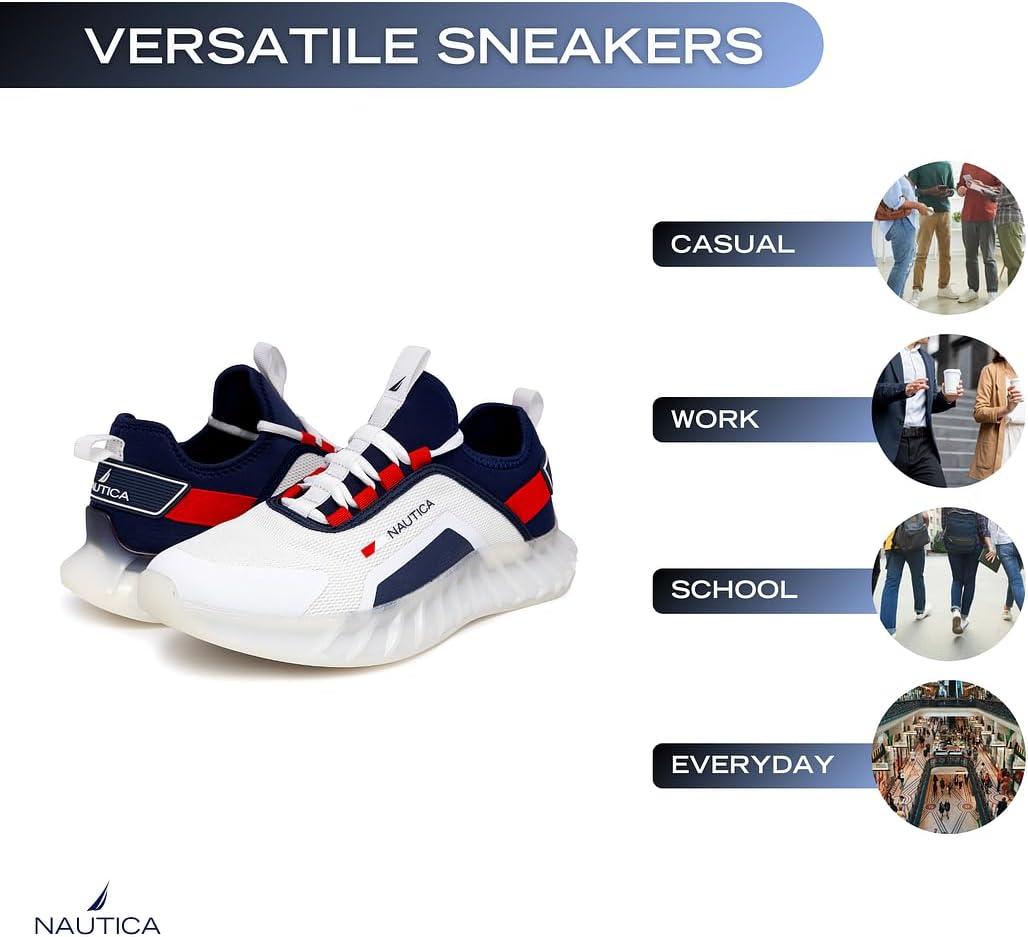 Nautica Men's Athletic Sneakers, Lightweight Running Shoes with Stylish Design and Supportive Sole Experience the perfect blend of performance and style with Nautica Men's Athletic Sneakers, designed for those who demand both comfort and a sleek modern look. Featuring a breathable mesh upper, these lightweight running shoes provide exceptional ventilation to keep your feet cool and dry. The innovative lace-up closure ensures a secure fit, while the padded collar and cushioned insole deliver all-day comfort whether you're hitting the gym, walking around town, or tackling an intense workout. Nautica's signature branding adds a premium touch, making these sneakers the ideal choice for both athletic and casual wear. Built for superior performance, these men’s sneakers feature a durable outsole with a unique lattice structure that provides enhanced flexibility and traction on multiple surfaces. The shock-absorbing midsole helps reduce impact with every step, making them the perfect choice for running, jogging, training, or everyday activities. Designed to support your natural movement, the ergonomic construction offers excellent arch support and stability, ensuring you stay comfortable even during long hours of wear. The stylish low-top design seamlessly blends with jeans, joggers, or workout gear, offering endless versatility for any occasion. Step into the ultimate combination of function and fashion with Nautica’s cutting-edge sports shoes. Whether you're looking for lightweight running shoes, comfortable workout sneakers, or a stylish casual sneaker to elevate your everyday look, this athletic footwear has you covered. The sleek silhouette and high-performance materials make these shoes a must-have for men who value durability, comfort, and trend-forward design. Perfect for athletes, travelers, and trendsetters alike, these sneakers redefine what it means to stay active in style.