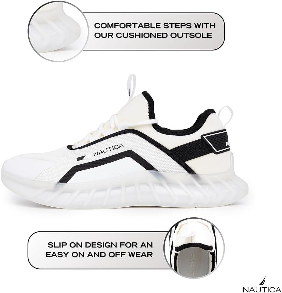 Nautica Men's Athletic Sneakers, Lightweight Running Shoes with Stylish Design and Supportive Sole Experience the perfect blend of performance and style with Nautica Men's Athletic Sneakers, designed for those who demand both comfort and a sleek modern look. Featuring a breathable mesh upper, these lightweight running shoes provide exceptional ventilation to keep your feet cool and dry. The innovative lace-up closure ensures a secure fit, while the padded collar and cushioned insole deliver all-day comfort whether you're hitting the gym, walking around town, or tackling an intense workout. Nautica's signature branding adds a premium touch, making these sneakers the ideal choice for both athletic and casual wear. Built for superior performance, these men’s sneakers feature a durable outsole with a unique lattice structure that provides enhanced flexibility and traction on multiple surfaces. The shock-absorbing midsole helps reduce impact with every step, making them the perfect choice for running, jogging, training, or everyday activities. Designed to support your natural movement, the ergonomic construction offers excellent arch support and stability, ensuring you stay comfortable even during long hours of wear. The stylish low-top design seamlessly blends with jeans, joggers, or workout gear, offering endless versatility for any occasion. Step into the ultimate combination of function and fashion with Nautica’s cutting-edge sports shoes. Whether you're looking for lightweight running shoes, comfortable workout sneakers, or a stylish casual sneaker to elevate your everyday look, this athletic footwear has you covered. The sleek silhouette and high-performance materials make these shoes a must-have for men who value durability, comfort, and trend-forward design. Perfect for athletes, travelers, and trendsetters alike, these sneakers redefine what it means to stay active in style.