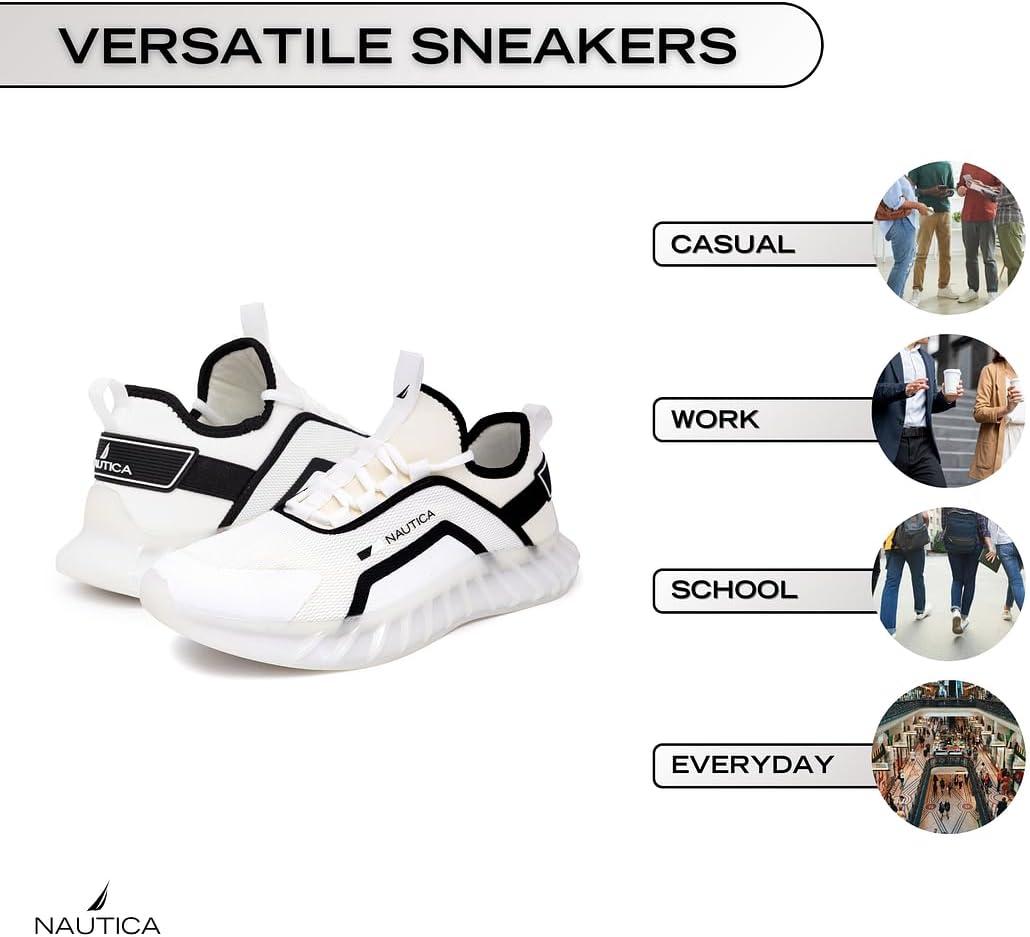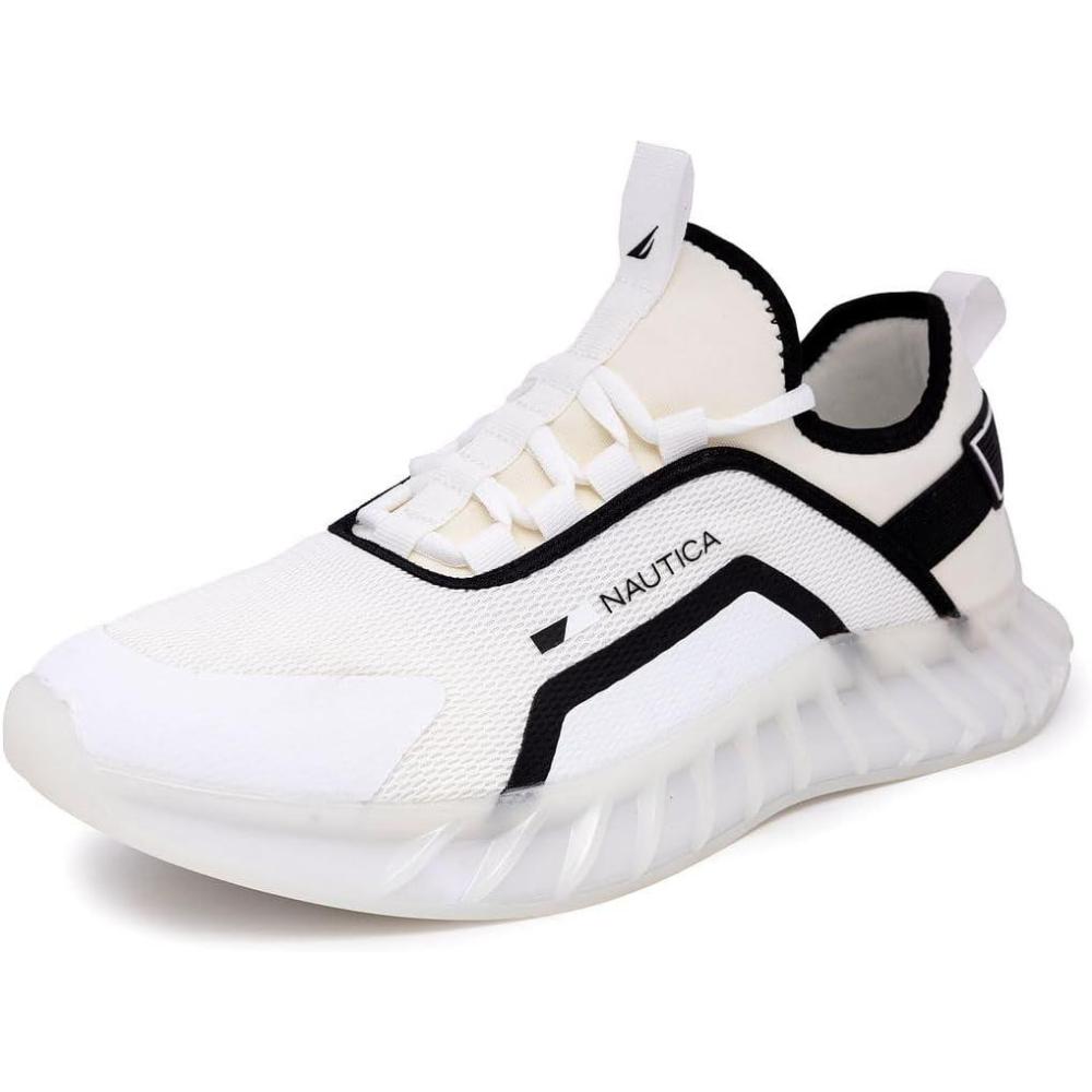 Nautica Men’s Casual Fashion Sneakers – Lightweight Lace-Up Athletic Walking Shoes for Gym & Tennis, Comfortable(White/Black)