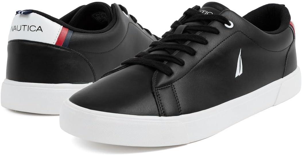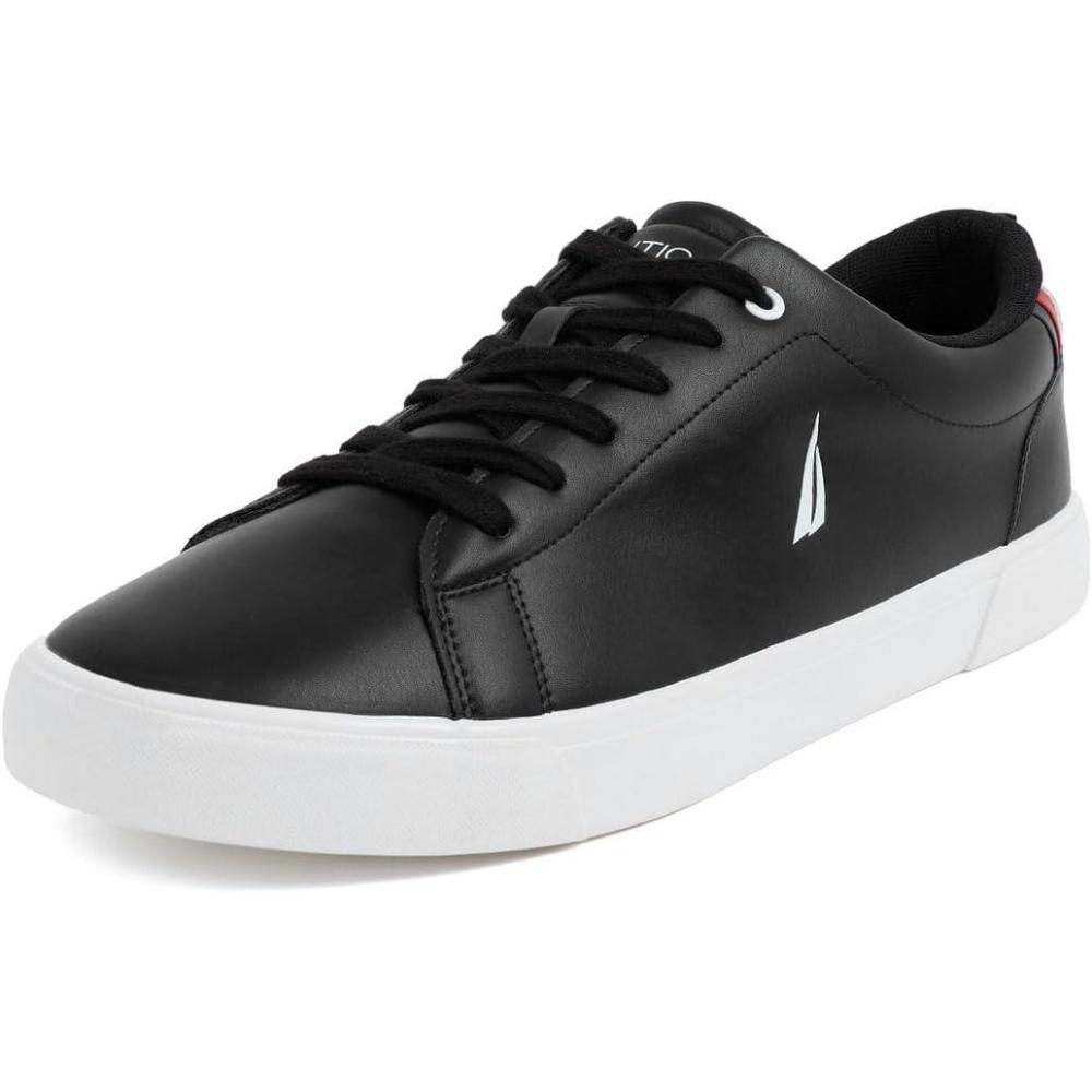 Nautica Men's Casual Shoe, Classic Lace-Up Low Top Loafer, Fashion Sneaker - in Medium & Wide Width Sizes(Black/White)