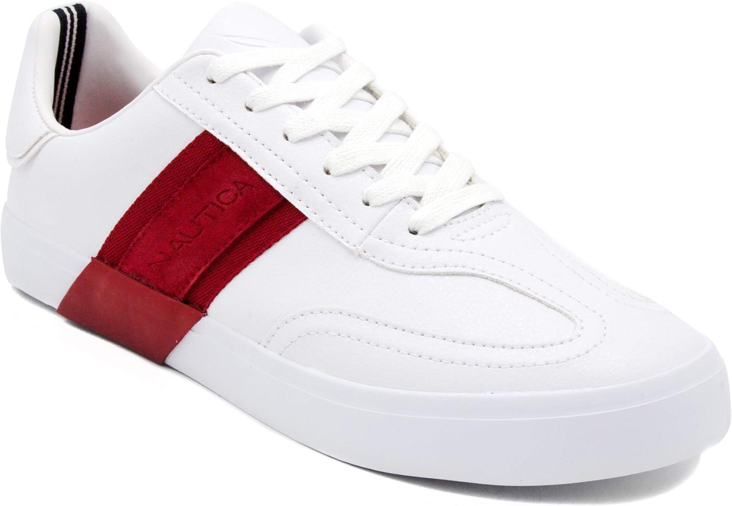 Nautica Men’s Casual Shoe, Classic Lace-Up Low Top Loafer, Fashion Sneaker – in Medium & Wide Width Sizes(White/Red)