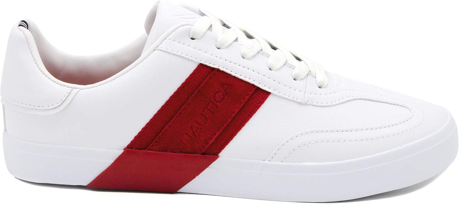 Nautica Men's Casual Shoe, Classic Lace-Up Low Top Loafer, Fashion Sneaker - in Medium & Wide Width Sizes(White/Red)