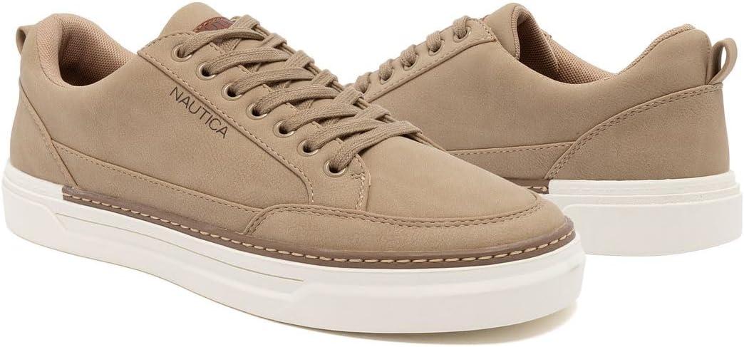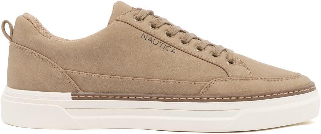 Nautica Men's Classic Lace-Up Low Top Fashion Sneaker Loafer - Stylish and Comfortable Casual Shoe(Light Taupe-colson)