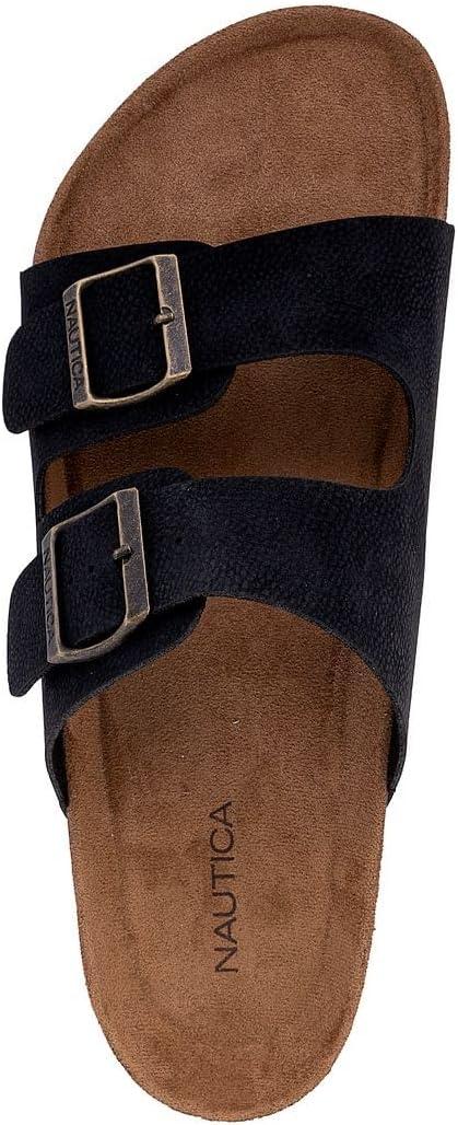 Nautica Men's EVA Double Buckle Slide Sandals - Adjustable Waterproof Slip-On Comfort Shoes for Casual Wear, Beach, and Poolside(Black X Tumbled)