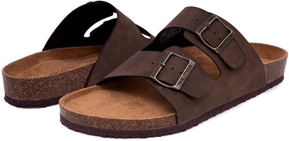 Nautica Men's EVA Double Buckle Slide Sandals - Adjustable Waterproof Slip-On Comfort Shoes for Casual Wear, Beach, and Poolside(Espresso)