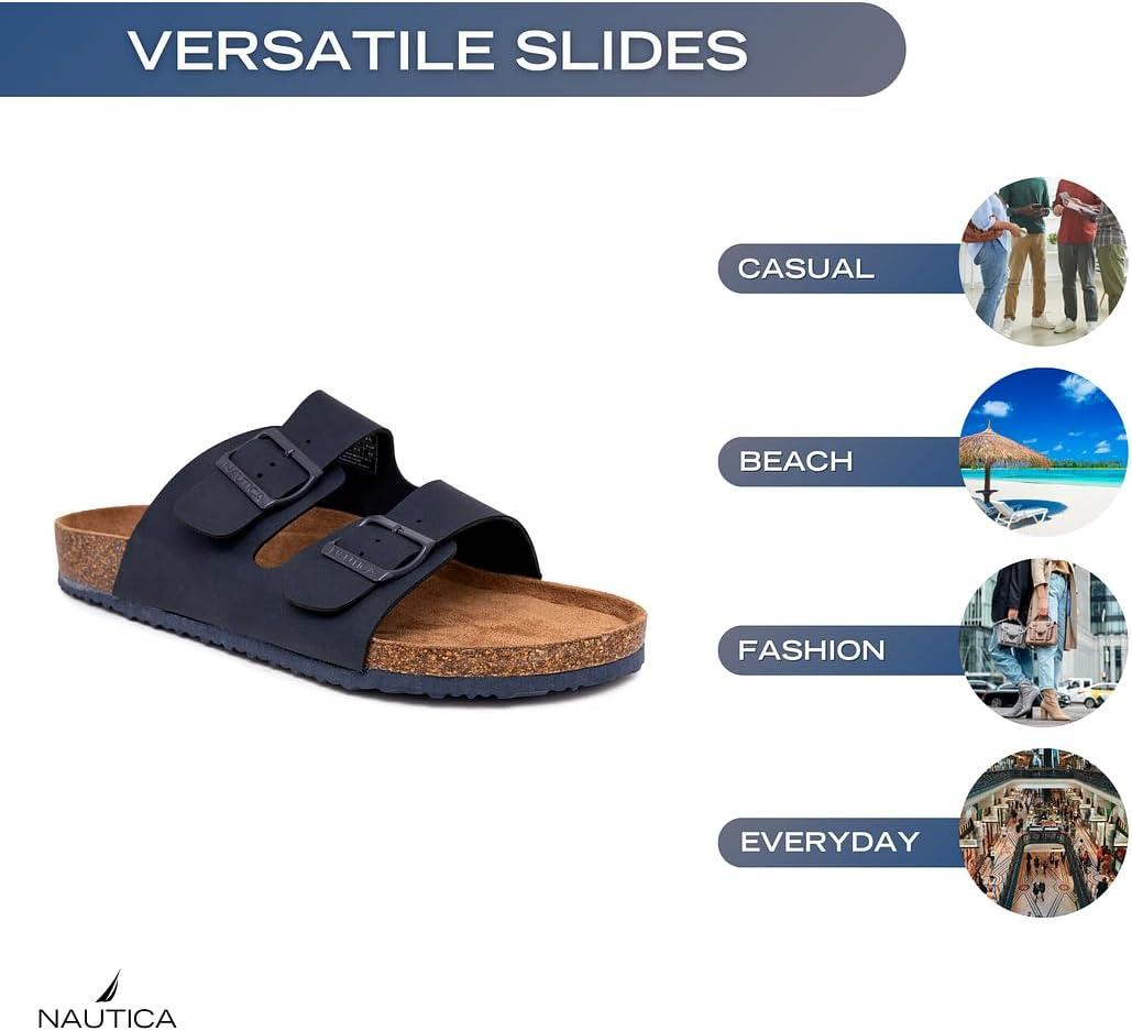 Nautica Men's EVA Double Buckle Slide Sandals - Adjustable Waterproof Slip-On Comfort Shoes for Casual Wear, Beach, and Poolside(Navy Mono-triun)