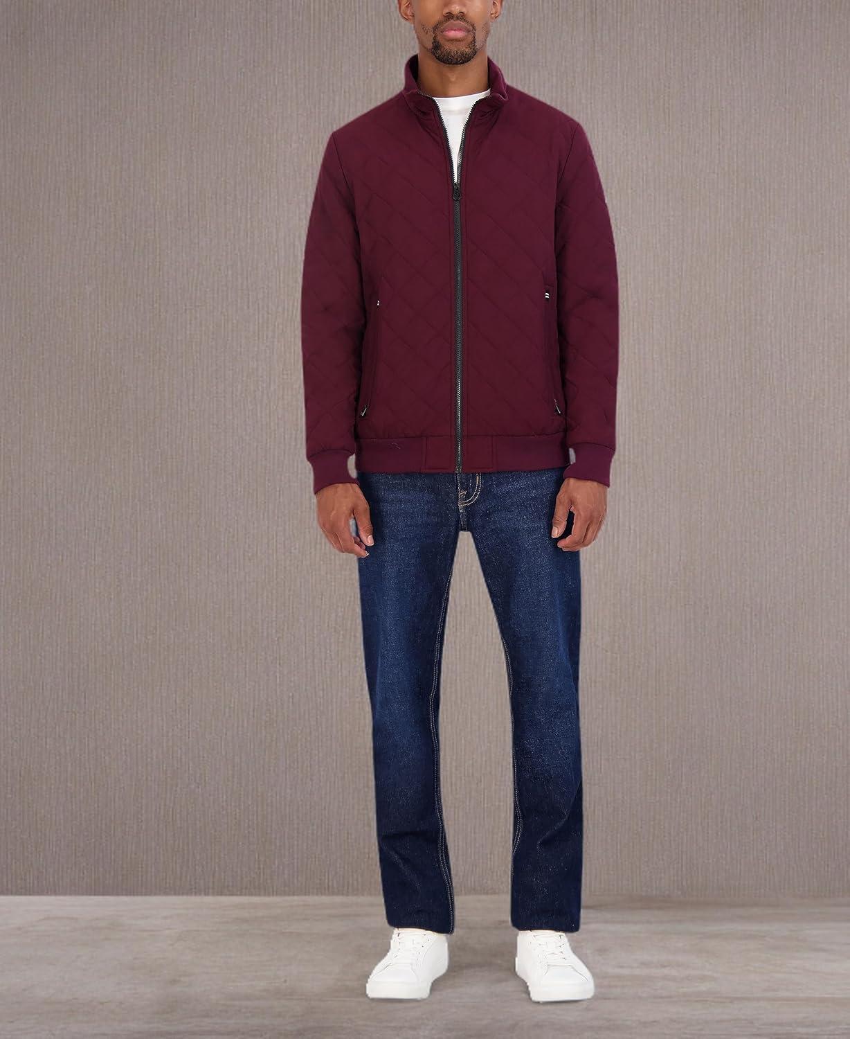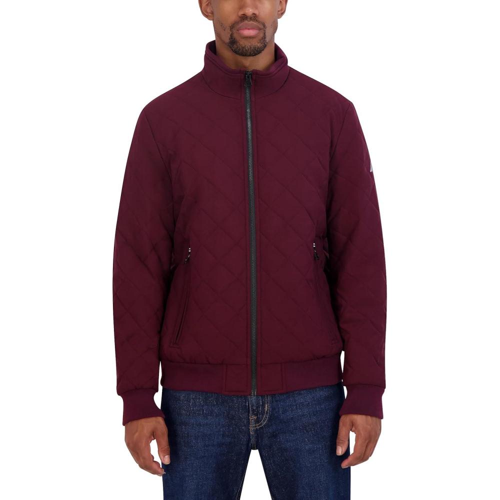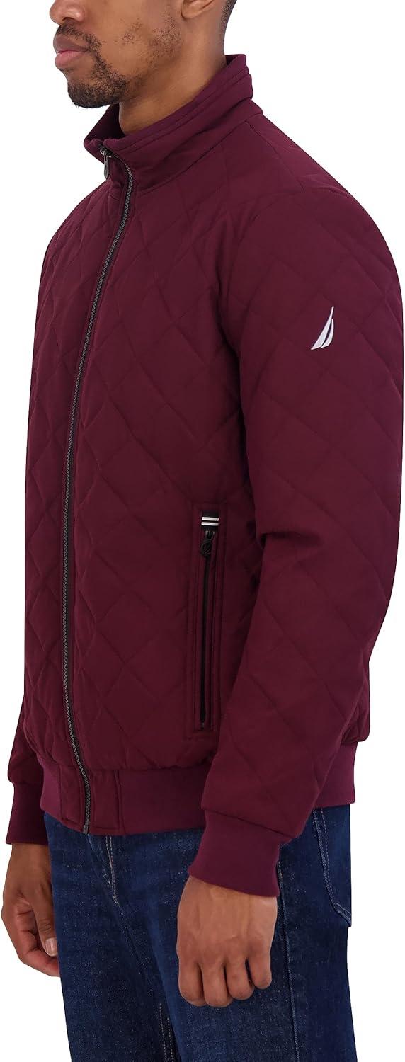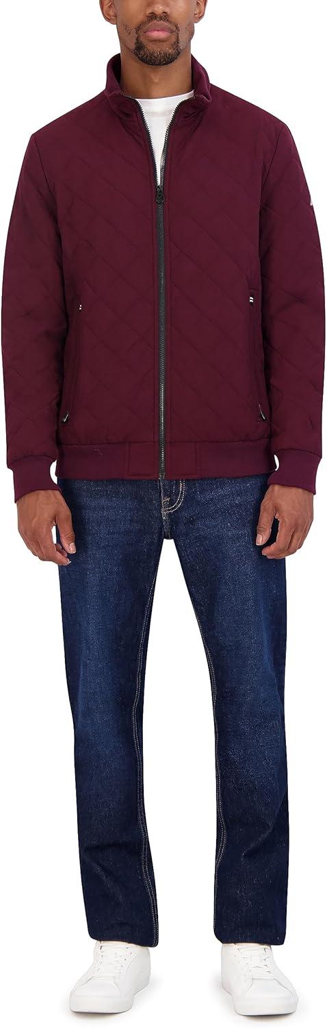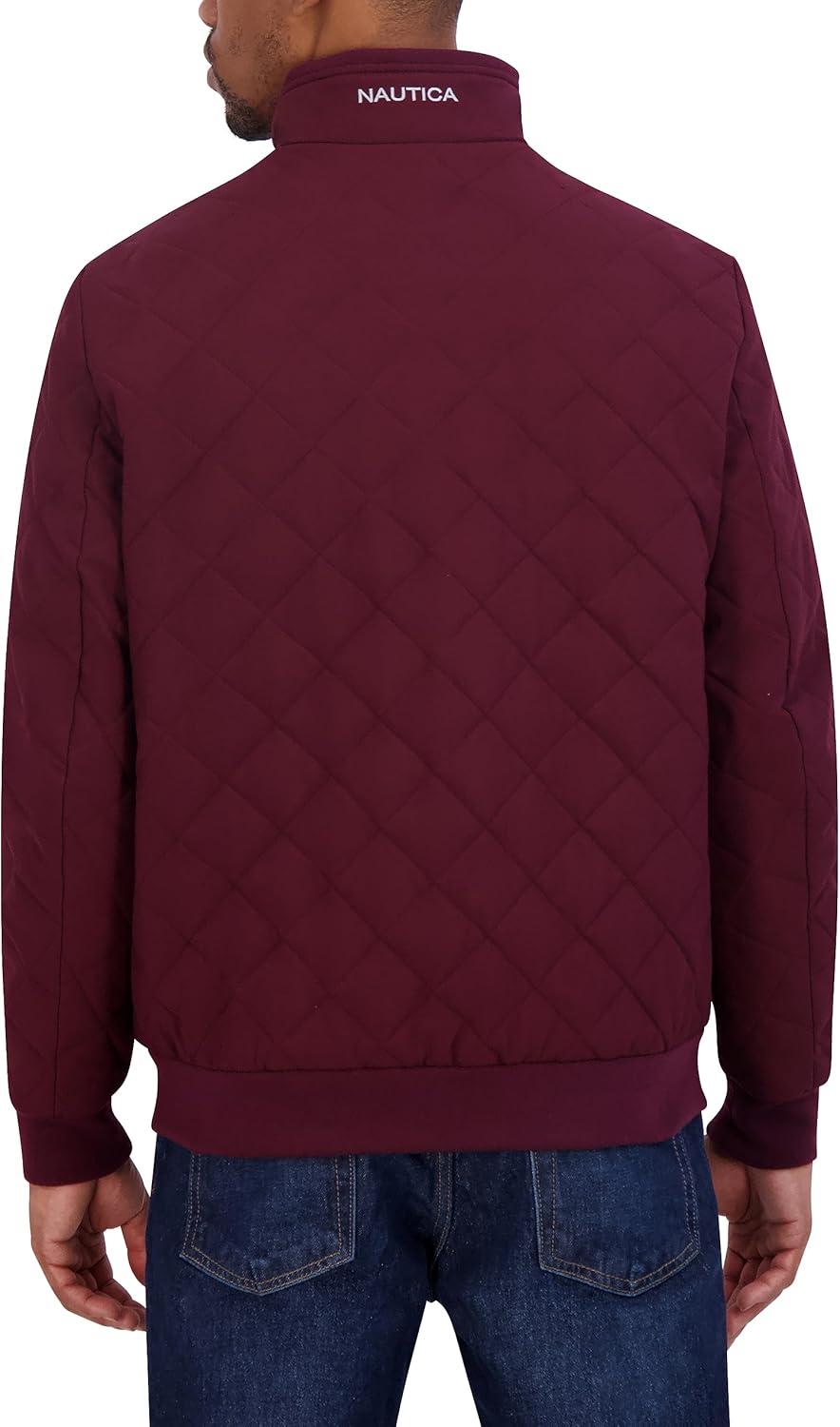 Nautica Men's Lightweight Quilted Bomber Jacket – Mechanical Stretch Wind & Water-Resistant(Burg)