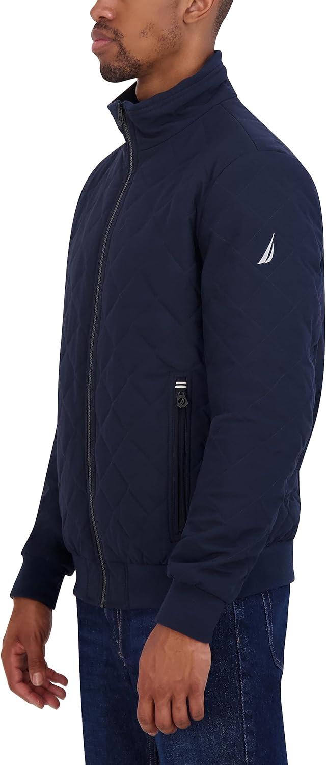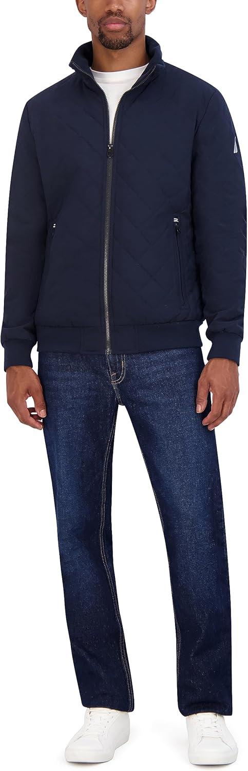 Nautica Men's Lightweight Quilted Bomber Jacket – Mechanical Stretch Wind & Water-Resistant(Ocean)